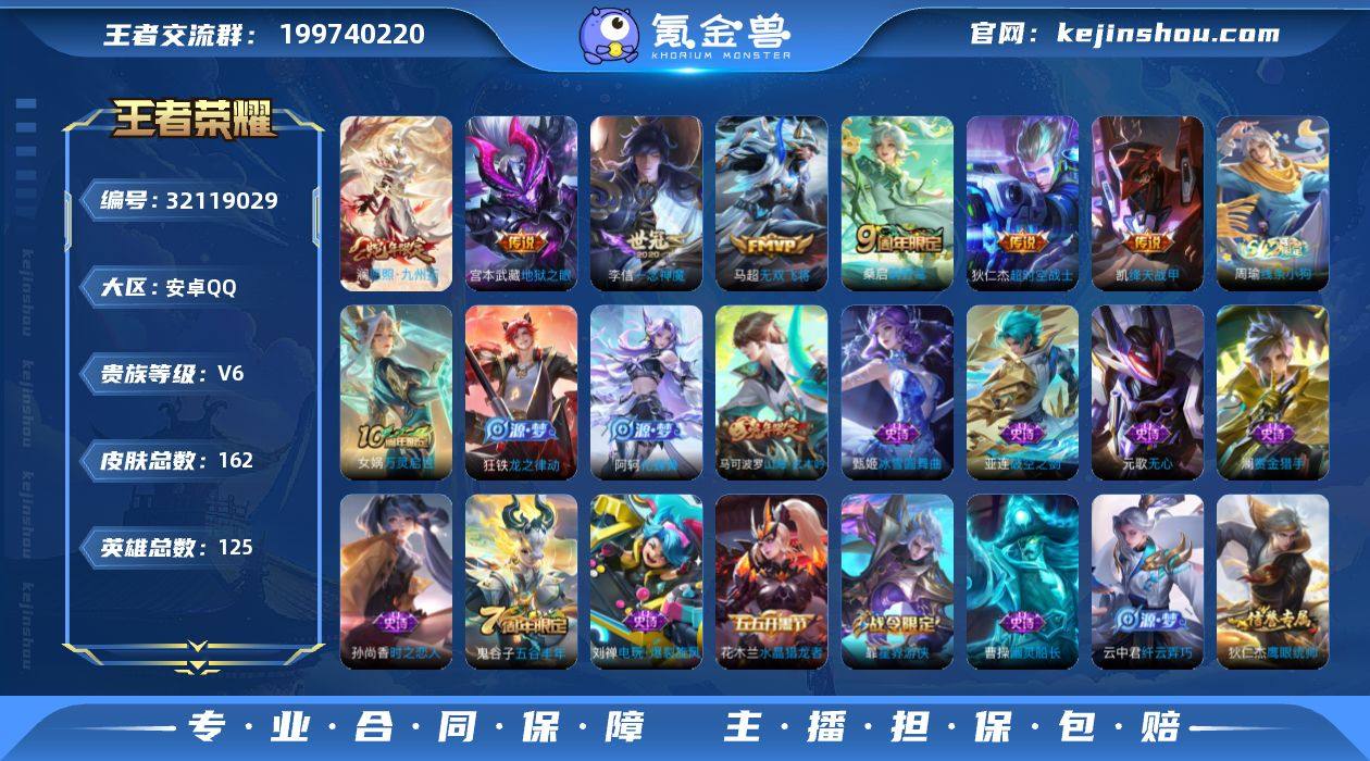 安卓Q 可二次 7传说125英雄162皮肤 愿照九州拓 鸣野蒿 无双飞将 绛天战甲 一念神魔 地狱之眼 超时空战士 王者荣耀账号