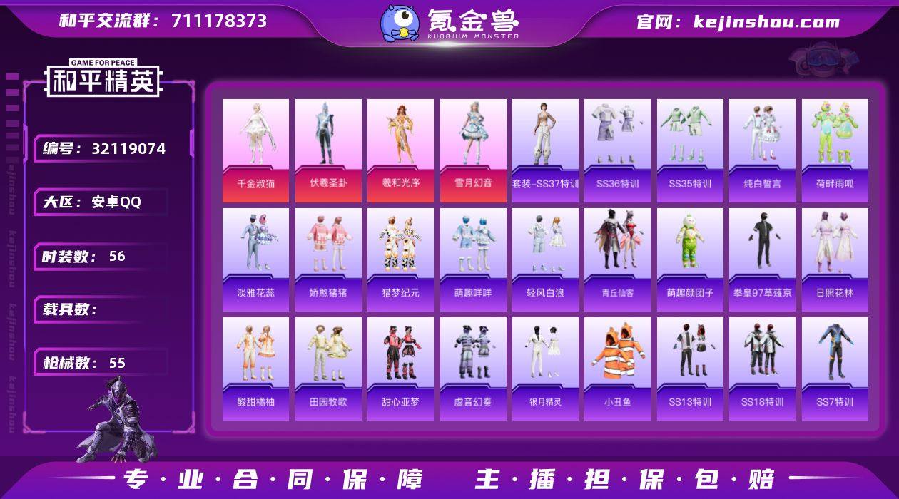 安卓 微信-1粉装-9特效枪-0载具-0粉色飞行器-28076热力值-4王牌印记-60套装-107枪皮 【热门品类】:套装-龟仙人,套装-暗影哥特 【粉色套装】:角色-圣堂之誓 【粉色枪皮等级】:AKM-绿萝繁花(五级),SCAR-L-锦绣绵绵(五级),M416-电玩时刻(五级),GROZA-镜光银凌(五级),AUG-暖羊咩咩(五级),Kar98K-巳巳如意(五级),Mk14-甜梦熊击(五级),DP-28-豹影疾电(五级),MG-36-沧焰双生(五级) 【粉色枪皮】:AKM-绿萝繁花,SCAR-L-锦绣绵绵,M416-电玩时刻,GROZA-镜光银凌,AUG-暖羊咩咩,Kar98K-巳巳如意,Mk14-甜梦熊击,DP-28-豹影疾电,MG-36-沧焰双生 【粉色降落伞】:圣堂之誓降落伞,异瞳寒姬降落伞 【稀有套装】:套装-龟仙人,套装-炽纹蛇影,套装-巳巳如意,套装-糖糖葫芦,套装-青团波波,套装-燕燕于飞,套装-鱼渊荷华,套装-粉恋花,套装-紫幽梦,套装-蓝冰羽 【稀有枪皮】:AKM-2P战斗服款,AKM-江南烟雨,AKM-霓虹街区,AKM-龙的传人,M416-糯团青竹,AUG-月影灵韵,QBZ-彩虹符号,M762-天降萌叽,M762-彩虹符号,G36C-星穹咏叹调,AC-VAL-快闪甜心,AC-VAL-闲梦青缨,蜜獾-天降萌叽,UZI-啾咪啾咪,UZI-天降萌叽,UMP45-生命誓言,UMP45-蓝色火焰,Vector-焰鹰斗篷,汤姆逊-天降萌叽,汤姆逊-炫彩节奏,P90-快闪甜心,P90-巳巳如意,Kar98K-红色方程式,AWM-焰鹰斗篷,SKS-炫彩节奏,Mini14-耀粉歌者,M417-惊鸿侠骨,MK20-H-快闪甜心,M200-惊鸿侠骨,S686-巳巳如意,S12K-夜灯,DBS-焰鹰斗篷,DBS-彩虹符号,M249-彩虹符号,DP-28-焰鹰斗篷,DP-28-彩虹符号,MG3-幻世战舞者,MG3-惊鸿侠骨,MG3-摩登王国,短管霰弹-竹节火铳,短管霰弹-星穹咏叹调,沙漠之鹰-快闪甜心,TMP-9-江南烟雨,爆炸猎弓-惊鸿侠骨,破片手榴弹-巳巳如意 【其他套装】:套装-SS25特训,套装-SS26特训,套装-SS27特训,套装-SS...