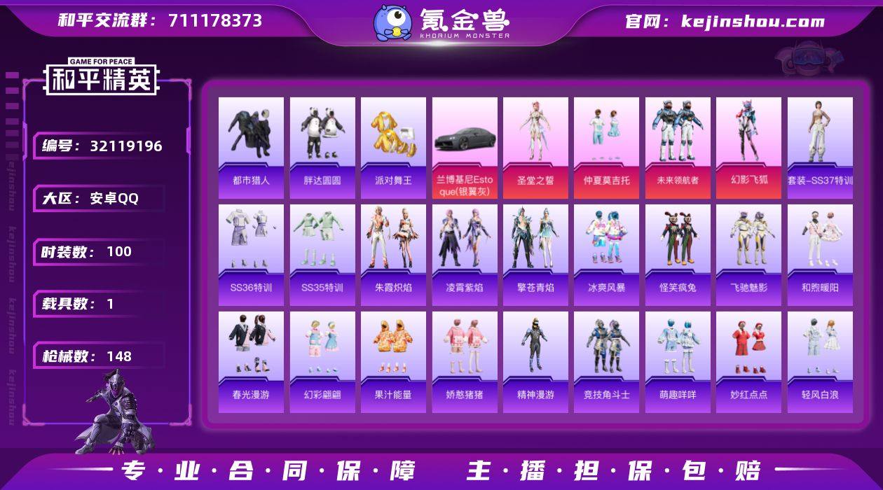 【和平精英】4粉装,11特效枪,1载具,历史最高段位:卓越王牌16星 王牌印记17次 热力值:83559,209套装,294枪械,350装备,182战备;套装:套装-仲夏莫吉托,角色-圣堂之誓,套装-未来领航者,套装-幻影飞狐,套装-特训学院,套装-猎鹰,套装-青年教官,套装-橘黑制服,套装-红色运动,套装-黄色运动,套装-蓝色运动,套装-黄色伏地魔,套装-白色伏地魔,套装-黑色伏地魔,套装-竞技名士,套装-深蓝色名流,套装-酒红色名流,套装-湖蓝色名流,套装-黄色名流,套装-猛禽,套装-长空猛禽,套装-漫步者,套装-黎明保卫者,套装-蓝色守护者,套装-海岛探路者,套装-旭日情侣,套装-冷焰舞者,套装-灼焰舞者,套装-都市猎人,套装-青羽突袭者,套装-浪漫天命,套装-战地督导,套装-迎春赐吉,套装-春日漫步,套装-沙漠毒蛇,套装-鹰眼刺客,套装-冰冻风暴,套装-完美偶像,套装-人气偶像,套装-幻影武者,套装-街头潮人,套装-蓝彩潮人,套装-魅力单车,套装-绮丽涂鸦,套装-耀眼新星,套装-竞技达人朋克,套装-都市漫游者,套装-超能勇士,套装-狂沙舞者,套装-破晓战魂,套装-森林游猎者,套装-都市魅力,套装-潮流炫酷,套装-派对舞王,套装-雪山精英,套装-极地朋克,套装-幻世战舞者,套装-甜蜜菠萝,套装-暗影哥特,套装-呆萌铁蟹,套装-夏日倾情,套装-缤纷果语,套装-滨海厨神,套装-Alan Walker,套装-龙魂突击队,套装-冰川特警,套装-元素星魂,套装-胖达圆圆,套装-极速红龙,套装-格斗先锋,套装-小丑鱼,套装-梦魇先生,套装-黑夜传说,套装-粉红小猪,套装-破蛋小黄鸡,套装-疯狂小兔子,套装-精神漫游,套装-鹤鸣,套装-霓虹街区,套装-激萌罗小黑,套装-潮萌小黄鸭,套装-软萌银虎,套装-白熊同盟,套装-萌黄之夏,套装-夏日音浪,套装-探宝勇士,套装-牛气满满,套装-白糯汤圆,套装-怪笑疯兔,套...