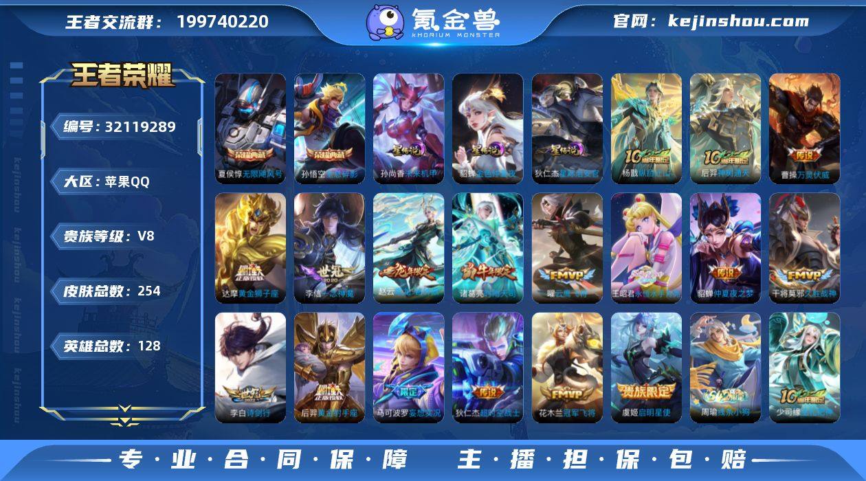 【YX558】贵族8/皮肤254/典藏2/传说17/史诗76/英雄128/孙权全皮/敖隐全皮/全息碎影/无限飓风号/未来机甲/金色仲夏夜/星际治安官/纵目迁山/神树通天/万灵伏威/乘龙·铭钟鼎/永恒水手月亮/妄想实况/诗剑行/时雨天司/启明星使/云鹰飞将/一念神魔/久胜战神/黄金狮子座/冠军飞将/黄金射手座/仲夏夜之梦/超时空战士-狄仁杰/阴阳师/皇家上将/神迹守卫-墨子/蔷薇恋人/狮舞东方/玩趣恶龙/迷踪丽影/超时空战士-钟无艳/幻夜卜梦/猎兽之王/赤莲之焰/云间偶戏/无心/朔风刀(s17)/落雪兰心/岱宗/暗影游猎/山海·玄木吟/魔术师/万华元夜(s22)/星际陆战队-达摩/沙漠行僧(s26)/海滩派对/醍醐杖(s20)/航海奇遇记/夺宝奇兵/傲雪梅枪/午后时光/驯魔猎人/金庭之子(s27)/潮玩骑士王/至尊宝/御旌(s15)/银河之约/云中旅人(s29)/神迹守卫-钟馗/驱傩正仪(s24)/单词大作战/繁星吟游/原初探秘者(s21)/五谷丰年/火炮绅士/混沌棋(s18)/顽趣-梦奇/星空之诺/大漠名商(s28)/疑决卦(s19)/李小龙/擒涛扼浪(s31)/电玩高手/胡桃异想国/纤云弄巧/御銮(s16)/西部大镖客-猪八戒/梁祝/天狼绘梦者/拒霜思/暖冬·兔眠/狂想玩偶喵/探海日志(s32)/海盐诗旅(s30)/星界游侠/流音漫舞/地狱燃心/江河有灵/古海寻踪(s33)/百解令(蒙犽)/蒙恬荣光圣徽/高渐离燃音魔法/妲己灵卜魔法/鬼谷子天穹祈灯(S34)/琥珀纪元伽罗/逆浪荇歌/荣光之誓/光弋星穹/往忆晖光/线条小狗-周瑜/电玩小子/苍穹之光/暗夜猫娘/冰雪圆舞曲/鬼剑武藏/水果甜心/摇滚巨星/魅力维加斯/女仆咖啡/龙骑士/金属风暴/圣诞狂欢/绅士熊喵/幽灵船长/千年之狐/乱世虎臣/水晶猎龙者/德古拉伯爵/缤纷独角兽/暗隐猎兽者/黄金分割率/心灵战警/冰冠公主/心灵骇客/特工魅影/曙光守护者/逐浪之夏/功夫厨神/星夜王子/节奏热浪/猫狗日记-孙策/鹰眼统帅/魅语/神威/月团寄思/龙之律动/灵蛊蚀心/万灵启世/巫礼祀神/钟馗锁墨魂/教...