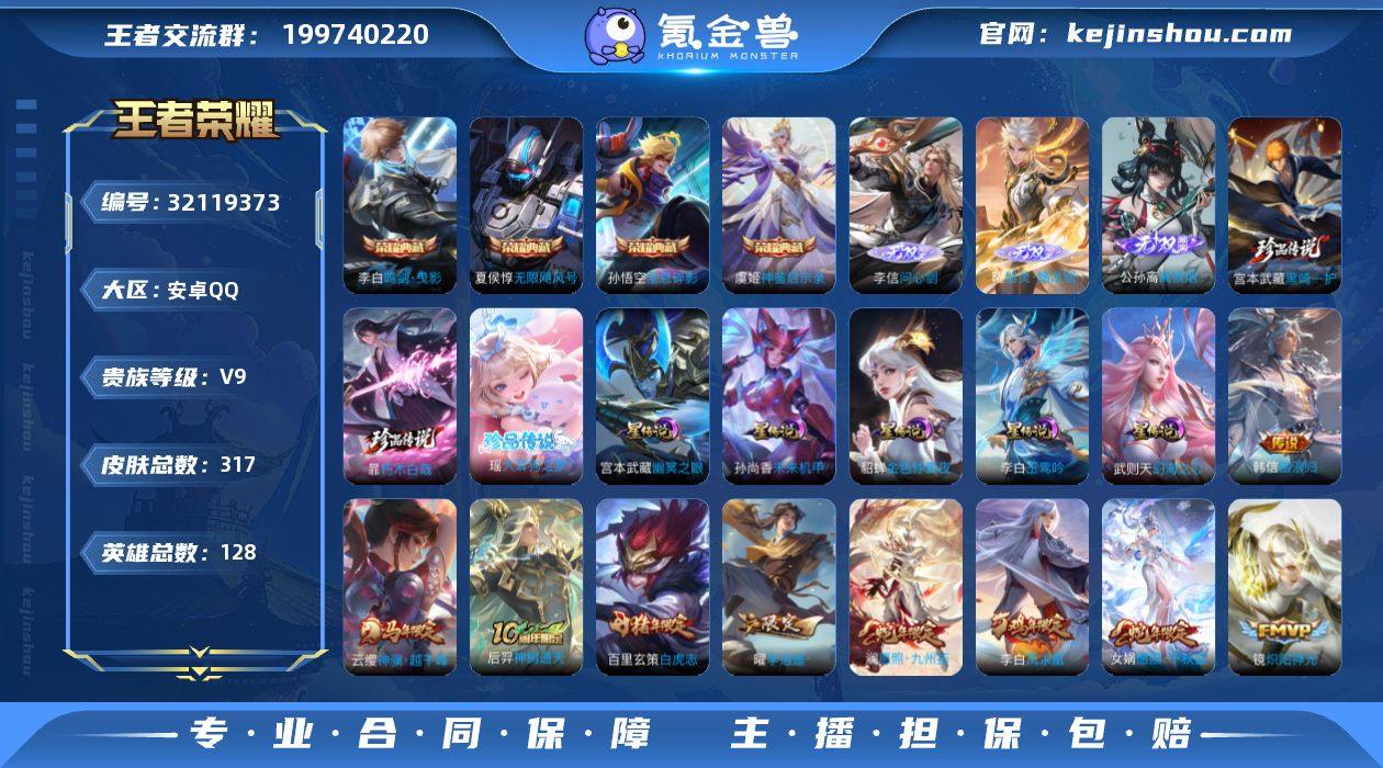 【秒换绑】安卓Q-V9-最强王者段位-128英雄-317皮肤-4典藏皮肤-3无双-3珍品传说-31传说-94史诗 【英雄全皮】:孙权全皮,敖隐全皮,空空儿全皮,影全皮 【荣耀典藏】:孙悟空全息碎影,夏侯惇无限飓风号,李白鸣剑曳影,虞姬神鉴启示录 【无双皮肤】:李信问心剑,曜器灵螭龙剑,公孙离离恨烟 【珍品传说】:宫本武藏黑崎一护,暃朽木白哉,瑶大耳狗之梦 【传说皮肤】:韩信踏浪归,云缨神骥越千峰,后羿神树通天,女娲愿照千秋盛,澜愿照九州拓,云缨幻光神枪,桑启鸣野蒿,墨子黄金天蝎座,赵云乘龙铭钟鼎,夏洛特浮生妄,马超无双飞将,露娜启示之音,女娲补天,王昭君乞巧织情,曜李逍遥 ,李元芳飞鸢探春,镜炽阳神光,虞姬启明星使,关羽武圣,李信一念神魔,貂蝉猫影幻舞,张良黄金白羊座,干将莫邪久胜战神,达摩黄金狮子座,百里玄策白虎志,梦奇胖达荣荣,后羿黄金射手座,貂蝉仲夏夜之梦,李白凤求凰,孙尚香末日机甲,宫本武藏地狱之眼 【限定皮肤】:公孙离离恨烟,蔡文姬夏日便利店,虞姬夏日便利店,姜子牙天穹之誓,狄仁杰阴阳师,赵云皇家上将,墨子神迹守卫,妲己时之彼端,嬴政优雅恋人,芈月重明,芈月白晶晶,夏侯惇朔风刀,曹操烛龙,典韦穷奇,马可波罗暗影游猎,狄仁杰魔术师,狄仁杰万华元夜,达摩星际陆战队,达摩沙漠行僧,项羽海滩派对,老夫子醍醐杖,老夫子航海奇遇记,关羽武圣,程咬金演武夺筹,露娜一生所爱,露娜启示之音,刘邦夺宝奇兵,兰陵王驯魔猎人,兰陵王金庭之子,孙悟空至尊宝,孙悟空大圣娶亲,孙悟空孙行者,虞姬启明星使,钟馗驱傩正仪,女娲补天,雅典娜单词大作战,雅典娜黎明之约,蔡文姬繁星吟游,鬼谷子原初探秘者,苏烈千军破阵,百里玄策白虎志,百里玄策原初追逐者,弈星混沌棋,梦奇顽趣,公孙离蜜橘之夏,沈梦溪大漠名商,明世隐疑决卦,裴擒虎李小龙,裴...