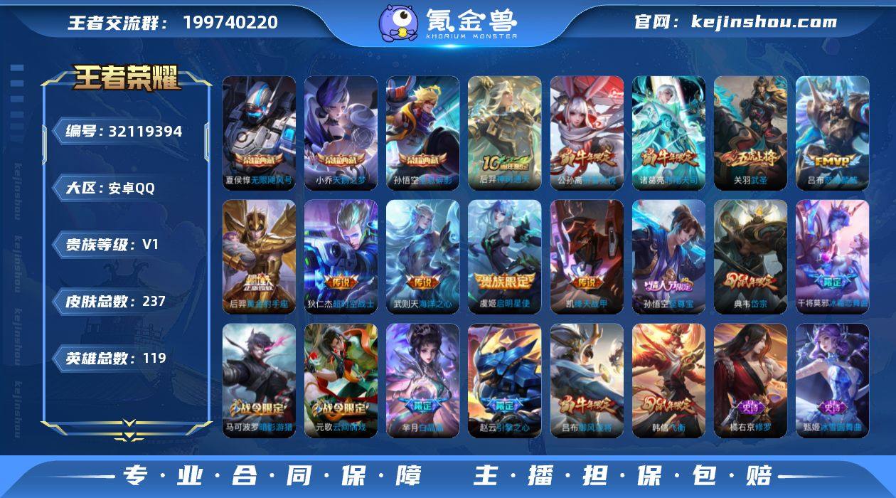 无二次-安卓Q-V0-荣耀黄金IV段位-119英雄-237皮肤-3典藏皮肤-1典藏英雄-10传说-59史诗HZ263602 【荣耀典藏】:武则天英雄,孙悟空全息碎影,夏侯惇无限飓风号,小乔天鹅之梦 【传说皮肤】:后羿神树通天,吕布怒海麟威,公孙离祈雪灵祝,诸葛亮时雨天司,铠绛天战甲,虞姬启明星使,关羽武圣,后羿黄金射手座,武则天海洋之心,狄仁杰超时空战士 【限定皮肤】:白起狰,狄仁杰阴阳师,虞姬凯尔特女王,赵云皇家上将,赵云引擎之心,赵云龙胆,墨子降魔,庄周蜃楼王,阿轲迷踪丽影,钟无艳王者之锤,孙膑妖精王,孙膑天狼运算者,扁鹊炼金王,芈月白晶晶,吕布御风骁将,周瑜赤莲之焰,元歌云间偶戏,元歌无心,夏侯惇朔风刀,甄姬游园惊梦,曹操天狼征服者,典韦穷奇,典韦岱宗,马可波罗暗影游猎,狄仁杰魔术师,狄仁杰万华元夜,达摩星际陆战队,达摩沙漠行僧,项羽海滩派对,项羽霸王别姬,老夫子醍醐杖,关羽武圣,程咬金演武夺筹,刘邦夺宝奇兵,韩信飞衡,兰陵王金庭之子,亚瑟狮心王,亚瑟潮玩骑士王,孙悟空至尊宝,牛魔御旌,牛魔奔雷神使,李元芳银河之约,李元芳云中旅人,虞姬启明星使,杨玉环遇见飞天,干将莫邪冰霜恋舞曲,雅典娜单词大作战,雅典娜黎明之约,蔡文姬繁星吟游,太乙真人饕餮,鬼谷子原初探秘者,诸葛亮时雨天司,苏烈千军破阵,百里玄策原初追逐者,弈星混沌棋,公孙离祈雪灵祝,沈梦溪星空之诺,明世隐疑决卦,裴擒虎李小龙,裴擒虎擒涛扼浪,狂铁御狮,米莱狄胡桃异想国,盾山御銮,猪八戒西部大镖客,嫦娥拒霜思,嫦娥暖冬兔眠,蒙犽狂想玩偶喵,桑启海盐诗旅,暃星界游侠 【年限皮肤】:典韦岱宗,韩信飞衡,公孙离祈雪灵祝,诸葛亮时雨天司,吕布御风骁将,牛魔奔雷神使 【赛季限定】:亚瑟狮心王,庄周蜃楼王,孙膑妖精王,扁鹊炼金王,虞姬凯尔特女王,白起狰,太乙真人饕餮...
