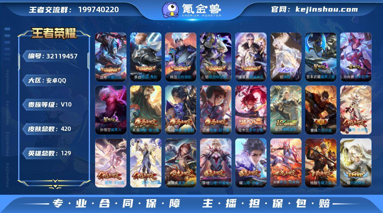 可换绑【V10精品号·打野43段·铠金标万战1.12万·铠全皮·6典藏含武则天英雄·铠无双·马年关羽马超云缨·龙年孙策赵云·狗年杨戬·兔年全套·神威·财神纳福天幕·多传说限定号】20按键,4星传说,1天幕,5戳戳,16王者印记,五级铭文250,可二次CD17963,安卓Q-V10-420皮肤-5典藏皮肤-1典藏英雄-1无双-50传说-125史【英雄全皮】:孙权全皮,苍全皮,铠全皮,敖隐全皮,阿古朵全皮,司空震全皮,戈娅全皮,空空儿全皮,影全皮【荣耀典藏】:武则天英雄,李白鸣剑曳影,诸葛亮星域神启,铠银白咏叹调,韩信弑枪猎影,吕布千魇归渊【无双皮肤】:铠神罪【天幕】:财神纳福天幕【星元皮肤】:宫本武藏幽冥之眼,孙悟空幽冥火,孙尚香未来机甲,刘备时之思念【传说皮肤】:云缨神骥越千峰,关羽神骥镇沧海,马超神骥逐星野,花木兰异界灵契,后羿神树通天,曹操万灵伏威,司空震愿照山河定,澜愿照九州拓,虞姬愿照岁时盈,云缨幻光神枪,桑启鸣野蒿,铠冥王哈迪斯,孙策乘龙淬吴钩,赵云乘龙铭钟鼎,铠琥珀纪元,艾琳觅芳踪,宫本武藏惊梅引,马可波罗妄想实况,东皇太一灼幽烈阳,孙悟空齐天大圣,小乔山海琳琅生,曜山海苍雷引,李信山海炽霜斩,吕布怒海麟威,李白诗剑行,狄仁杰神器狴犴令,马超无双飞将,孙策末日机甲,裴擒虎寅虎赤拳,赵云淬星耀世,王昭君乞巧织情,周瑜音你心动,铠绛天战甲,镜炽阳神光,虞姬启明星使,曜云鹰飞将,李信一念神魔,刘备时之恋人,貂蝉猫影幻舞,张良黄金白羊座,干将莫邪久胜战神,达摩黄金狮子座,梦奇胖达荣荣,后羿黄金射手座,杨戬永曜之星,孙尚香末日机甲,宫本武藏地狱之眼,孙悟空地狱火,武则天海洋之心,狄仁杰超时空战士【限定皮肤】:铠冥王哈迪斯,姜子牙天穹之誓,狄仁杰阴阳师,小乔山海琳琅生,赵云皇家上将,赵云引擎之心,赵云龙胆,墨子神迹守卫,庄周高山流水,...