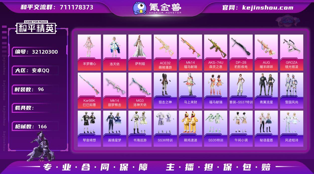 【0载具 9特效枪 3粉装 166枪皮 96套装】3印记/4.8万热力值/54级收藏家/角色-洛天依,角色-萨利娅,角色-羊梦糖心/9升级枪:AUG-暖羊咩咩,GROZA-镜光银凌,ACE32-萌骑漫游,Kar98K-巳巳如意,Mk14-甜梦熊击,Mk14-福马献瑞,AKS-74U-森灵之息,MG3-洛神天依,DP-28-豹影疾电/6飞行器:极意拳锋飞行器,炫彩糖果飞行器,登顶巅峰飞行器,异域银装飞行器,鸡智如我飞行器,狂鲨锋刃飞行器176759518x,编号:LYOAV51