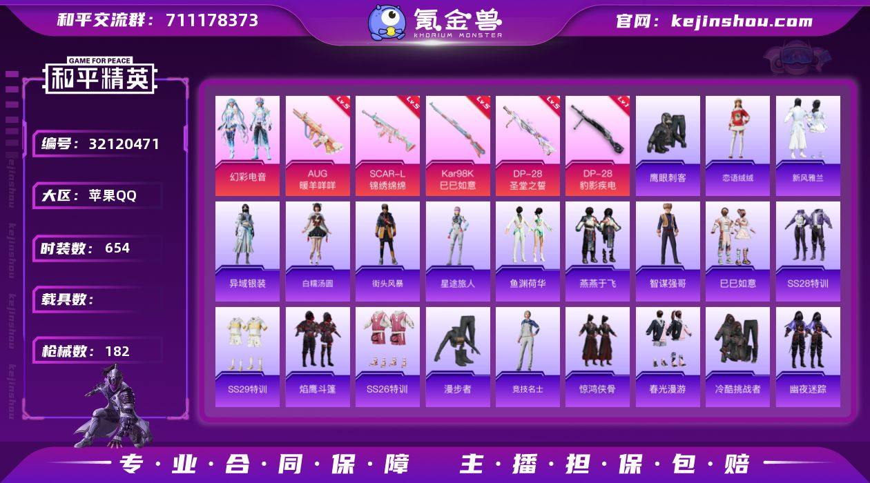 【特价出售】苹果Q-1稀有1粉装6特效枪10热门158套装182枪皮 49012热力值 16印记 历史绝世王牌22星 【1稀有】 AKM-缤纷海域 【1粉装】 幻彩电音 【6特效枪】 SCAR-L-锦绣绵绵 (5级) Kar98K-巳巳如意 (5级) DP-28-豹影疾电 (1级) AUG-暖羊咩咩 (5级) DP-28-圣堂之誓 (5级) Mk14-福马献瑞 (5级) 【10热门】 龟仙人 鹰眼刺客 粉红小猪 忍者信条 水银刺客 漫步者 破蛋小黄鸡 极速红龙 弄潮海豚 M24-奇异狩猎者 【1头盔】 金羽特工头盔 【1背包】 金羽特工背包