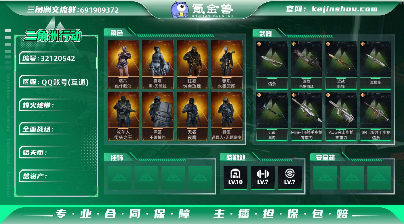 YQ-总资产189.6m/哈夫币9.5m/部门44444 【内测4红4刀高物资高特勤猛攻皮肤号 优品S蓝金一体色M7棱镜 影锋单刀 蚀金玫瑰/黑天际线/水墨云图/维什戴尔/电锯惊魂/北极星/黑海/零重力/纵横/信条/无机神经元/捞点薯条/特斯拉套 训中满级 靶场满级 仓库满级 除潜水2级全满! 无名-夜鹰 蜂医-送葬人 牧羊人-街头之王 深蓝-不破誓约 黄金鸟窝纪念 守信不渝 内测老兵 S3战场统帅 太空配送员 】 等级 60 烽火段位 钻石I 橙:;AUG零重力,Mini零重力,M250纵横,AK纵横,杠杆纵横,P90信条,SR信条,G3无机神经元,S12K无机神经元,G17无机神经元,G3骑士,M250骑士之心,S12K电锯惊魂,M14电锯惊魂,SCAR水墨云图,SCAR启航,腾龙捞点薯条,AWM捞点薯条,93R捞点薯条,M4阿米娅,勇士午夜邮差,AK特斯拉,UZI特斯拉,SR特斯拉,CAR阿米娅,复合弓天际线,K437北极星,QCQ北极星,725送葬人,AK夜鹰,MP5黑海,QJB黑海,SMG骑士,AS蛇年祥瑞,SR水墨云图,M7维京,M4蚀金玫瑰, 刀:近战电锯惊魂,近战北极星,近战黑海,近战影锋,近战信条 限时道具/段位以实际验号为准。如账号因没有维护,赛季更新等不可抗因素发生变化,不属于账号质量问题差""