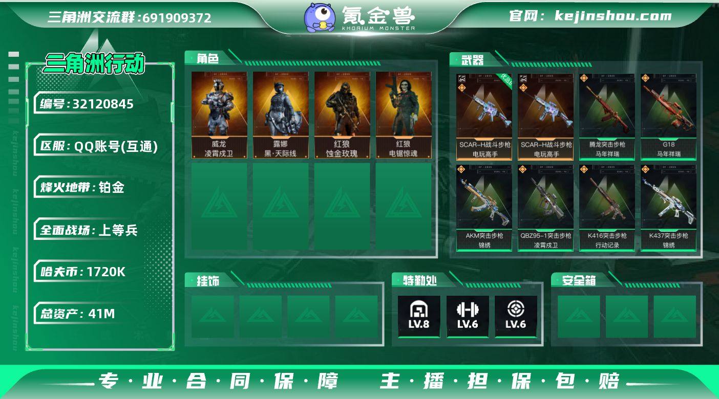 【4387】总资产(M):41M/哈夫币(K):1720K/哈夫币(K):1720K/传说枪皮数:24/全面战场等级:37_段位:上等兵/烽火地带等级:60_段位:铂金/红狼-蚀金玫瑰/露娜-黑·天际线/威龙-凌霄戍卫/红狼-电锯惊魂/近战-黑鹰/SCAR-H战斗步枪-电玩高手/优品B典藏武器外观-SCAR-H战斗步枪-电玩高手/M4A1突击步枪-蚀金玫瑰/M4A1突击步枪-阿米娅/AKM突击步枪-锦绣/QBZ95-1突击步枪-凌霄戍卫/K416突击步枪-行动记录/AUG突击步枪-悠然茶歇/AK-12突击步枪-特斯拉线圈/SCAR-H战斗步枪-启航/G3战斗步枪-骑士/腾龙突击步枪-马年祥瑞/K437突击步枪-锦绣/MK47突击步枪-悠然茶歇/UZI冲锋枪-特斯拉线圈/UZI冲锋枪-悠然茶歇/SMG-45冲锋枪-锦绣/SR-3M紧凑突击步枪-特斯拉线圈/勇士冲锋枪-能天使-午夜邮差/M14射手步枪-蛮荒/M14射手步枪-缄花/SR-25射手步枪-缄花/.357左轮-缄花/G18-马年祥瑞/复合弓-黑-天际线/AKM突击步枪-林中猎手/K416突击步枪-腊梅/K416突击步枪-阿萨拉特攻/AUG突击步枪-蝮蛇/SG552突击步枪-哈夫克警备/腾龙突击步枪-猎鳄行动/MP5冲锋枪-战术竞备/Vector冲锋枪-阿萨拉文明/SR-3M紧凑突击步枪-战术竞备/SR-3M紧凑突击步枪-开工大吉/勇士冲锋枪-深海恐惧/勇士冲锋枪-工业狂潮/勇士冲锋枪-丛林谍踪/MP7冲锋枪-六套之力/M1014霰弹枪-林中猎手/PKM通用机枪-阿萨拉特攻/M249轻机枪-丛林谍踪/QJB201轻机枪-炽焰/VSS射手步枪-丛林谍踪/SVD狙击步枪-阿萨拉工艺/M14射手步枪-航天庆典/SV-98狙击步枪-林中猎手/SV98狙击步枪-猎鳄行动/沙漠之鹰-曙光/M4A1突击步枪-千里骏骨/野牛冲锋枪-千里骏骨/SCAR-H战斗步枪-休闲时光/M4A1突击步枪-零点/M4A1突击步枪-前沿科技/AKM突击步枪-浅鲨小队/AKM突击步枪-肃杀/QBZ95-1突击步枪-医疗协议/QBZ95-1突击步枪-公平竞技/K416突击步枪-碳纤维/K416突击步枪-一帆风顺/M16A4突击步枪-街头涂鸦/AUG突击...