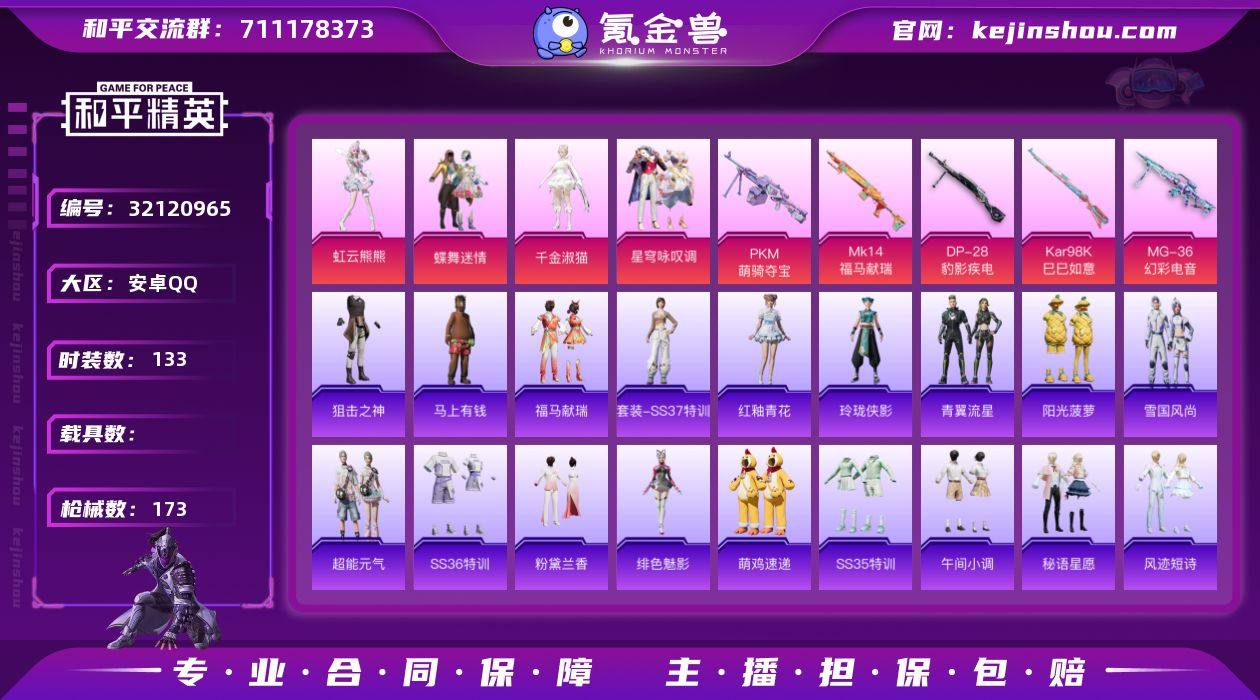 【0载具 5特效枪 4粉装 173枪皮 133套装】王牌印记10 4万热力值 蝶舞迷情,千金淑猫,星穹咏叹调,虹云熊熊 Kar98K-巳巳如意,Mk14-福马献瑞,MG-36-幻彩电音,PKM-萌骑夺宝,DP-28-豹影疾电 游梁vivo df43-01,编号:WPYZE05