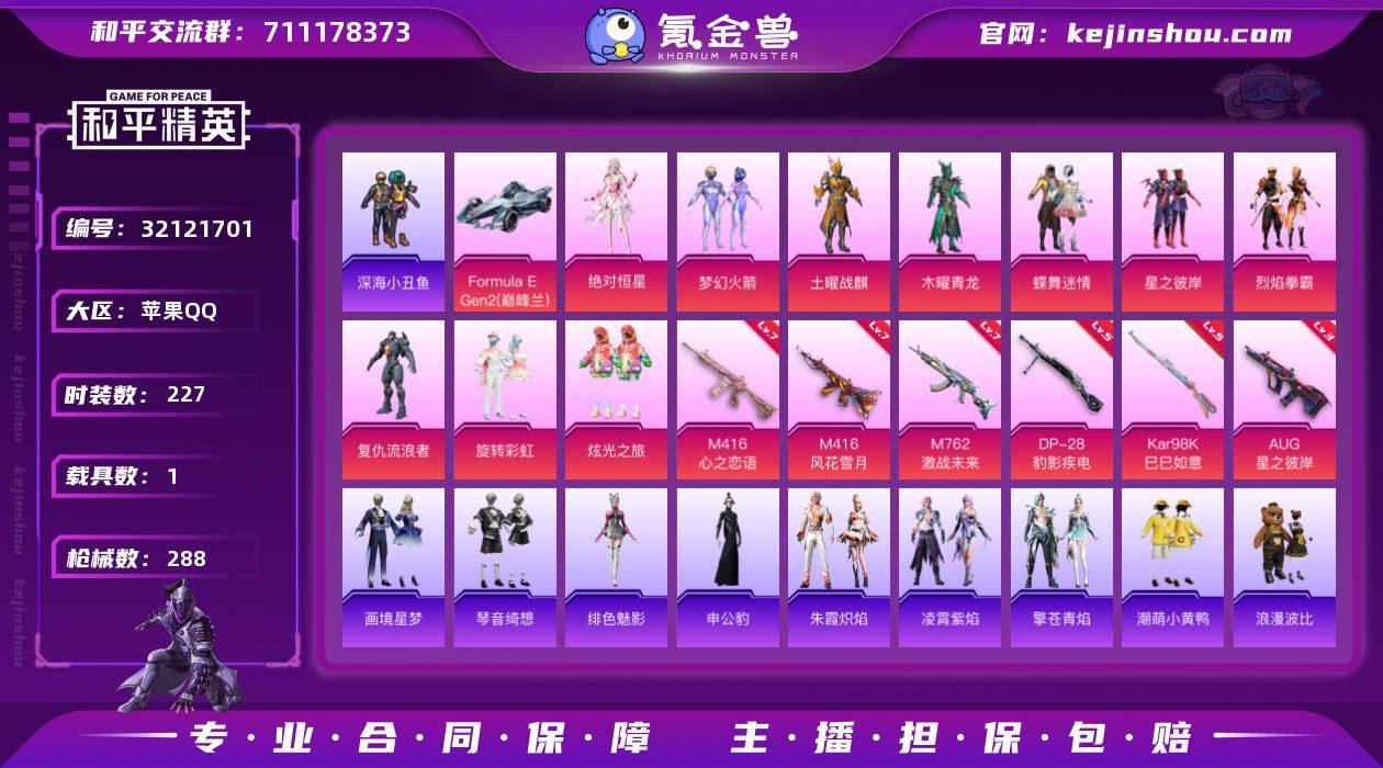 苹果 手Q-10粉装-9特效枪-1载具-4粉色飞行器-96518热力值-16王牌印记-227套装-288枪皮 【热门品类】:粉装-梦幻火箭,套装-浪漫天命,套装-深海小丑鱼,套装-金羽特工,套装-龟仙人,套装-潮萌小黄鸭,套装-暗影哥特,套装-浪漫波比 【粉色套装】:角色-绝对恒星,粉装-土曜战麒,粉装-木曜青龙,粉装-蝶舞迷情,粉装-梦幻火箭,粉装-星之彼岸,粉装-烈焰拳霸,角色-复仇流浪者,粉装-旋转彩虹,粉装-炫光之旅 【粉色枪皮等级】:M416-心之恋语(七级),M416-风花雪月(七级),AUG-星之彼岸(三级),M762-激战未来(七级),Kar98K-巳巳如意(五级),Mk14-福马献瑞(五级),AA12-G-萌骑幻想(五级),DP-28-豹影疾电(五级),燃烧瓶-天降桃花(四级) 【粉色载具】:Formula E Gen2(巅峰兰) 【粉色枪皮】:M416-心之恋语,M416-风花雪月,AUG-星之彼岸,M762-激战未来,Kar98K-巳巳如意,Mk14-福马献瑞,AA12-G-萌骑幻想,DP-28-豹影疾电,燃烧瓶-天降桃花 【粉色飞行器】:炫彩糖果飞行器,星之彼岸飞行器,齐天大圣飞行器,风花雪月飞行器 【粉色降落伞】:甜心宝贝降落伞,至尊龙雀降落伞,春暖花开降落伞,梦幻火箭降落伞,神秘黑猫降落伞,甜蜜誓约降落伞,星之彼岸降落伞,怪笑疯兔降落伞,烈焰拳霸降落伞,暗夜玫瑰降落伞,齐天大圣降落伞,天之羽翼降落伞,垂柳戏鸭降落伞,太空嘟嘟降落伞,旋转彩虹降落伞,仲夏莫吉托降落伞,拂晓神骑降落伞,创世·救赎降落伞,智耀战神降落伞,炫彩糖果降落伞 【稀有套装】:套装-龟仙人,套装-巳巳如意,套装-炫彩糖果,角色-魂电,角色-阿虎,套装-马上有钱,角色-俏兔智灵,套装-燕燕于飞,套装-鱼渊荷华,套装-樱梦幻音,套装-紫幽梦,套装-蓝冰羽,套装-极速光影,套装-朱霞炽焰,套装-凌霄紫焰,套装-擎苍青焰,角色-申公豹,角色-绯色魅影,套装-画境星梦,套装-琴音绮想...