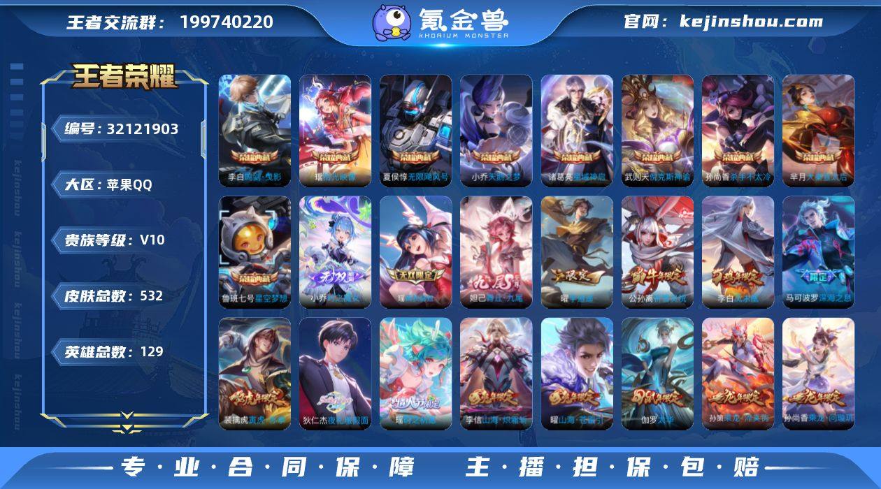【特价出售】苹果Q-V10-永恒钻石III段位-129英雄-532皮肤-9典藏皮肤-1典藏英雄-3无双-78传说-190史诗 【英雄全皮】:墨子全皮,孙尚香全皮,刘邦全皮,孙权全皮,娜可露露全皮,橘右京全皮,盾山全皮,猪八戒全皮,鲁班大师全皮,金蝉全皮,空空儿全皮 【荣耀典藏】:武则天英雄,武则天倪克斯神谕,夏侯惇无限飓风号,小乔天鹅之梦,孙尚香杀手不太冷,鲁班七号星空梦想,芈月大秦宣太后,李白鸣剑曳影,诸葛亮星域神启,瑶拾光映像 【无双皮肤】:小乔时之魔女,瑶真我赫兹,妲己青丘九尾 【传说皮肤】:云中君群星魔术团,墨子黄金天蝎座,海月金乌负日,吕布曦玄引,貂蝉曦玄引,孙尚香乘龙问璇玑,孙策乘龙淬吴钩,赵云乘龙铭钟鼎,艾琳觅芳踪,狄仁杰夜礼服假面,王昭君永恒水手月亮,甄姬至美化雀舞,大乔时之奇旅,澜电玩雷克斯,干将莫邪画中仙,虞姬无限倾心,项羽无限倾心,伽罗炽翼辉光,小乔山海琳琅生,曜山海苍雷引,李信山海炽霜斩,吕布怒海麟威,狄仁杰神器狴犴令,不知火舞绯月行,王昭君星穹之声,百里守约碎云,橘右京枫霜尽,娜可露露前尘镜,孙尚香音你闪耀,马可波罗深海之息,后羿无尽星芒,马超无双飞将,大乔挚爱花嫁,孙策挚爱之约,露娜启示之音,蔡文姬花朝如约,女娲补天,孙策末日机甲,瑶时之祈愿,裴擒虎寅虎赤拳,鲁班七号寅虎瑞焰,孙尚香异界灵契,貂蝉遇见胡旋,赵云淬星耀世,王昭君乞巧织情,西施游龙清影,曜李逍遥 ,周瑜音你心动,小乔音你心动,李元芳飞鸢探春,兰陵王默契交锋,公孙离祈雪灵祝,诸葛亮时雨天司,铠绛天战甲,镜炽阳神光,虞姬启明星使,孙悟空零号赤焰,关羽武圣,曜云鹰飞将,李信一念神魔,刘备时之恋人,伽罗太华,貂蝉猫影幻舞,张良黄金白羊座,干将莫邪久胜战神,虞姬云霓雀翎,达摩黄金狮子座,花木兰冠军飞将,梦奇胖达荣荣,后羿黄金射手...