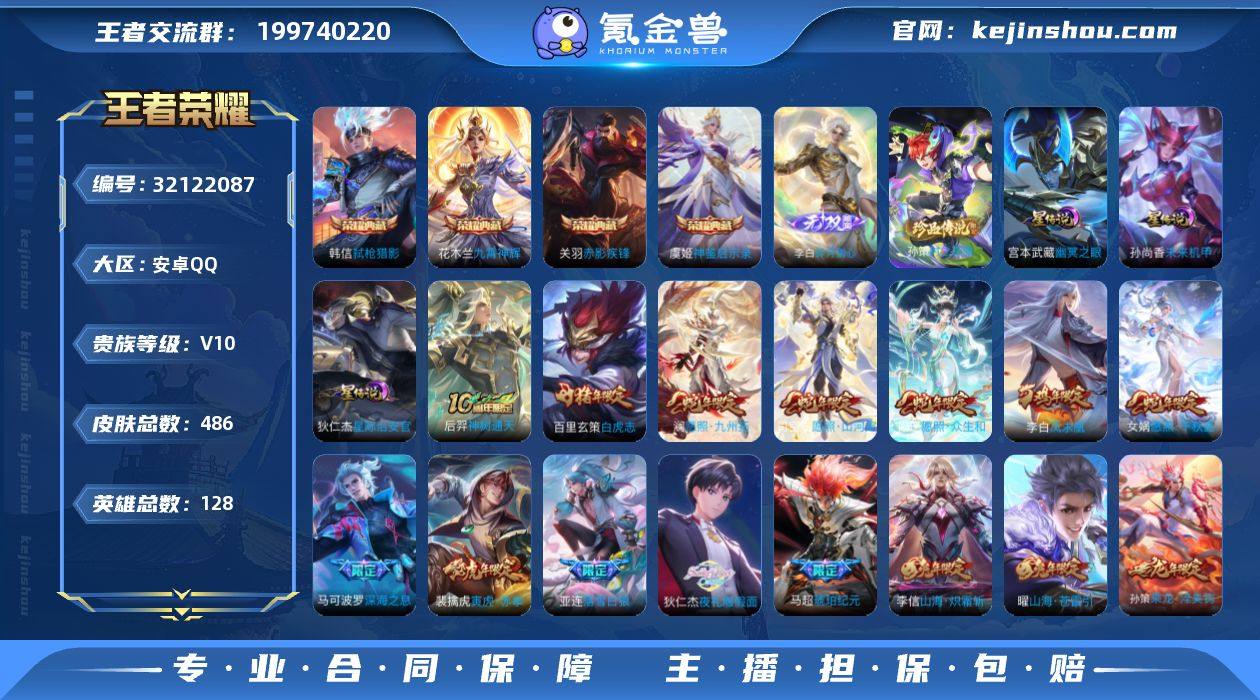 安卓Q-V10-至尊星耀II段位-128英雄-486皮肤-4典藏皮肤-1无双-1珍品传说-65传说-147史诗【英雄全皮】:刘邦全皮,孙权全皮,橘右京全皮,苏烈全皮,猪八戒全皮,蒙犽全皮,司空震全皮,赵怀真全皮,空空儿全皮,影全皮,海诺全皮【荣耀典藏】:花木兰九霄神辉,关羽赤影疾锋,韩信弑枪猎影,虞姬神鉴启示录【无双皮肤】:李白碎月剑心【珍品传说】:孙策时之奇旅【传说皮肤】:后羿神树通天,司空震愿照山河定,女娲愿照千秋盛,妲己愿照众生和,澜愿照九州拓,云缨幻光神枪,桑启鸣野蒿,夏侯惇霜北刀,朵莉亚心动手记,亚连落雪白狼,吕布曦玄引,貂蝉曦玄引,典韦战鼓燎原,孙尚香乘龙问璇玑,孙策乘龙淬吴钩,赵云乘龙铭钟鼎,马超琥珀纪元,铠琥珀纪元,澜逐花归海,艾琳觅芳踪,露娜霜月吟,狄仁杰夜礼服假面,宫本武藏惊梅引,东皇太一灼幽烈阳,张飞百相守梦,公孙离记忆之芯,夏洛特浮生妄,干将莫邪画中仙,伽罗炽翼辉光,孙悟空齐天大圣,曜山海苍雷引,李信山海炽霜斩,吕布怒海麟威,李白诗剑行,百里守约碎云,橘右京枫霜尽,马可波罗深海之息,马超无双飞将,孙策挚爱之约,裴擒虎寅虎赤拳,鲁班七号寅虎瑞焰,赵云淬星耀世,王昭君乞巧织情,周瑜音你心动,诸葛亮时雨天司,铠绛天战甲,镜炽阳神光,虞姬启明星使,曜云鹰飞将,李信一念神魔,刘备时之恋人,张良黄金白羊座,虞姬云霓雀翎,达摩黄金狮子座,百里玄策白虎志,梦奇胖达荣荣,后羿黄金射手座,杨戬永曜之星,诸葛亮武陵仙君,貂蝉仲夏夜之梦,李白凤求凰,孙尚香末日机甲,宫本武藏地狱之眼,孙悟空地狱火,狄仁杰超时空战士【限定皮肤】:夏侯惇霜北刀,蒙犽顽岩魄,蔡文姬夏日便利店,大乔绒语心约,虞姬夏日便利店,姜子牙天穹之誓,杨戬破阵退雄兵,狄仁杰阴阳师,廉颇寅虎御盾,赵云皇家上将,墨子神迹守卫,墨子降魔,嬴政白昼...
