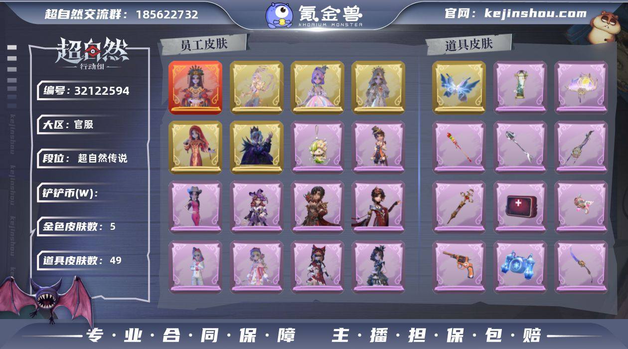 红色皮肤数量:1 金色皮肤数量:5 紫色皮肤数量:27 道具皮肤数量:49 镜生遗梦 莲华渡,遗失的童话,圣光之谕,镜花辞,渡鸦公爵 卖家说:低价出高氪号