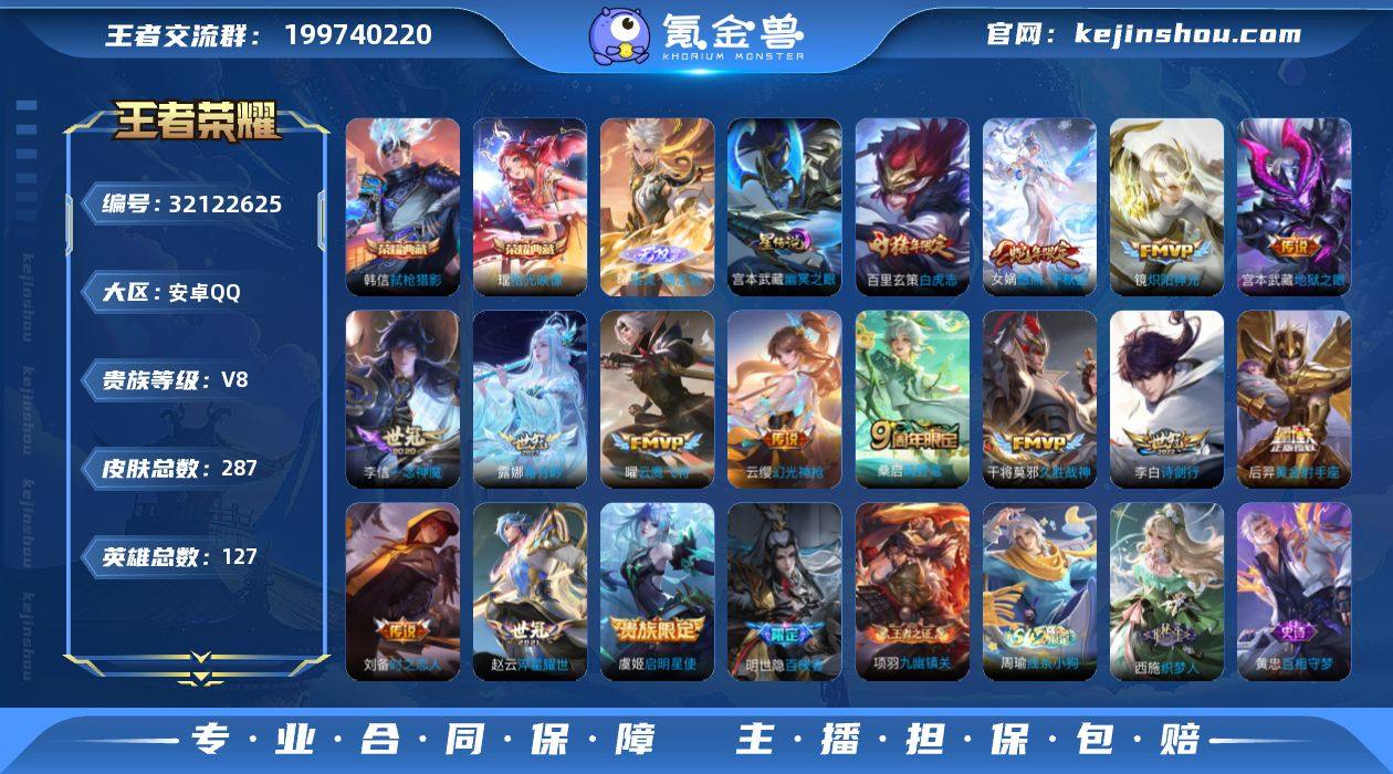 S2-LR23715 安卓QQ V8 287皮 2典藏1无双 2星元 95限定15传说 打野28段 全能高手 176幸运值 9按键1天幕 638英雄碎片 7张改名卡 营地号:1745362495 【无 双】器灵·螭龙剑,【荣耀典藏】弑枪猎影,拾光映像, 【星元皮肤】幽冥之眼,时之思念, 【热门限定】愿照·千秋盛,器灵·浮梦炉,至尊宝,白虎志,瑞麟志,神威,超元猎域,如梦令男,傲雪梅枪,默契交锋女,淬星耀世,玉兔公主,山海·玄木吟,启明星使,逐霄战戟, 【限定传说】拒霜思,猫狗日记男,久胜战神,一念神魔,猫狗日记女,云鹰飞将,孙行者,地狱之眼,时之恋人男,修罗,未来纪元,神迹守卫,炽阳神光,黄金射手座,天秀·启明,黄金分割率,超时空战士,魅语,千年之狐,末日机甲男,真我赫兹百里守约,原初追逐者,黎明之约,暗隐猎兽者,霜月吟,金属风暴,地狱岩魂,热力回旋,特工魅影,曙光守护者,幻光神枪,青蛇,白蛇,舞动绿茵,逐浪之夏,心灵战警,紫霞仙子,心灵骇客,幽灵船长,乘风破浪,圣诞狂欢,星夜王子,赏金猎手,节奏热浪,天才门将,绅士熊喵,暗夜贵公子,街头霸王,箭羽风息,乐园奇幻夜,月团寄思,摇滚巨星,缤纷独角兽,鬼剑武藏,德古拉伯爵,云间偶戏,死神来了,冰冠公主,花好人间,拳王,女仆咖啡,敏锐之力,炽阳神光,赏金猎手,诗剑行,赤刃凌霄,