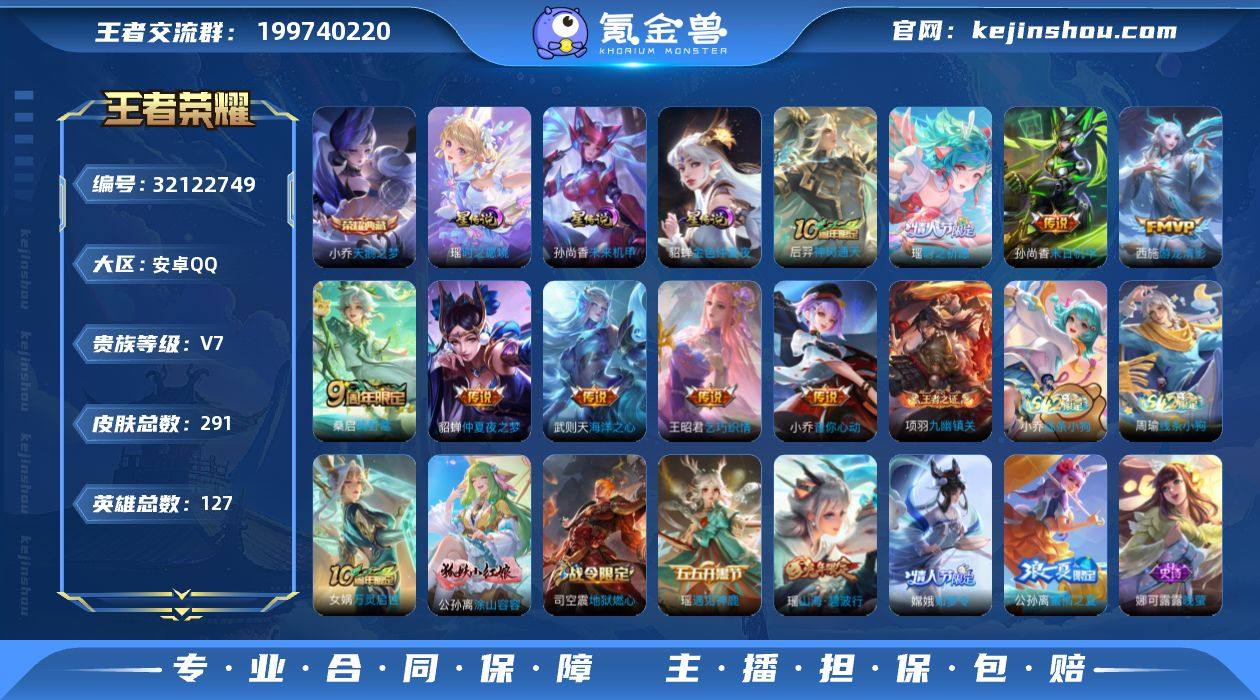W15043,,可立即换绑无需挂单养号,,,铭文满级,,典藏1,,传说9,,,星传说3,,按键6,,夺宝139,,,安卓Q-V7-最强王者段位-127英雄-291皮肤-1典藏皮肤-9传说-81史诗 【英雄全皮】:孙权全皮,空空儿全皮 【荣耀典藏】:小乔天鹅之梦 【传说皮肤】:后羿神树通天,桑启鸣野蒿,瑶时之祈愿,王昭君乞巧织情,西施游龙清影,小乔音你心动,貂蝉仲夏夜之梦,孙尚香末日机甲,武则天海洋之心 【限定皮肤】:白起狰,姜子牙天穹之誓,狄仁杰阴阳师,赵云皇家上将,墨子神迹守卫,妲己时之彼端,孙尚香蔷薇恋人,庄周高山流水,钟无艳超时空战士,孙膑寅虎展翼,白起夜都怪侠,芈月幻夜卜梦,元歌无心,夏侯惇朔风刀,甄姬女儿国国王,甄姬游园惊梦,甄姬落雪兰心,典韦穷奇,狄仁杰魔术师,狄仁杰万华元夜,达摩沙漠行僧,项羽海滩派对,老夫子醍醐杖,老夫子航海奇遇记,程咬金演武夺筹,王昭君午后时光,兰陵王金庭之子,亚瑟潮玩骑士王,牛魔御旌,后羿圣弓游侠,李元芳云中旅人,钟馗驱傩正仪,杨玉环遇见飞天,干将莫邪胡桃夹子,干将莫邪真爱魔法,雅典娜黎明之约,蔡文姬繁星吟游,鬼谷子原初探秘者,鬼谷子五谷丰年,大乔白鹤梁神女,黄忠火炮绅士,苏烈千军破阵,百里玄策原初追逐者,弈星混沌棋,梦奇顽趣,公孙离蜜橘之夏,沈梦溪大漠名商,明世隐疑决卦,明世隐吟游魔法,裴擒虎李小龙,裴擒虎擒涛扼浪,狂铁御狮,狂铁电玩高手,米莱狄御霄,瑶时之祈愿,瑶山海碧波行,云中君纤云弄巧,伽罗天狼溯光者,盾山御銮,上官婉儿梁祝,嫦娥如梦令,嫦娥拒霜思,嫦娥暖冬兔眠,鲁班大师探海日志,桑启海盐诗旅,暃星界游侠,艾琳女武神,艾琳流音漫舞,司空震地狱燃心,阿古朵江河有灵,张良古海寻踪,蒙犽百解令,蒙恬荣光圣徽,高渐离燃音魔法,妲己灵卜魔法,鬼谷子天穹祈灯,伽罗琥珀纪元,沈梦溪...
