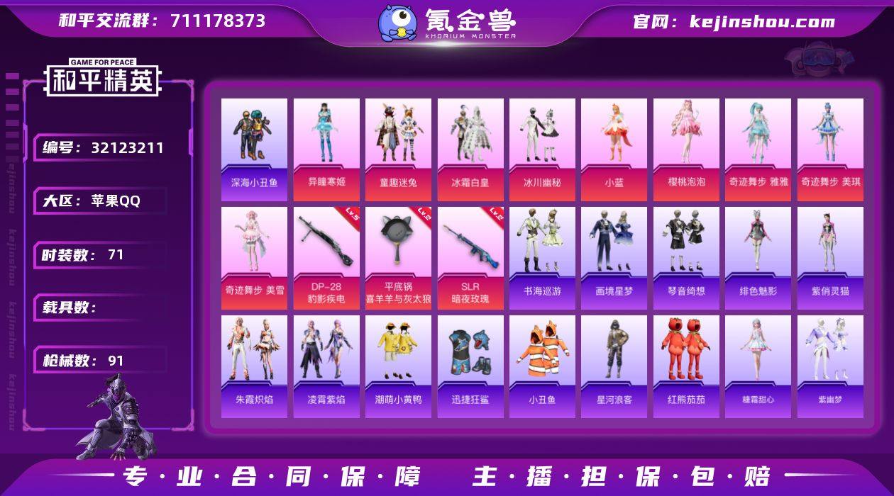 YZJ15465-可二次-苹果Q-10粉装4特效枪10热门【精品公主号 童趣迷兔 小舞灵珑 樱桃泡泡 小蓝 奇迹舞步雅雅 奇迹舞步美雪 奇迹舞步美琪 权威小番茄 樱桃黑巧 小黄鸭 炽阳之花 鎏光妙舞 云韶流音 小丑鱼 鲨鱼裤 双马尾 鸢尾晶梦背包 奇迹舞步头盔 灵珠宝驹-伙伴 5款飞行器】71套装91枪皮 26353热力值 4印记 历史卓越王牌10星 【10粉装】 小蓝 奇迹舞步美雪 奇迹舞步美琪 奇迹舞步雅雅 小舞灵珑 异瞳寒姬 樱桃泡泡 冰川幽秘 童趣迷兔 冰霜白皇 【4特效枪】 DP-28-豹影疾电 (5级) SLR-暗夜玫瑰 (2级) Mk14-福马献瑞 (1级) 平底锅-喜羊羊与灰太狼 (2级) 【10热门】 小丑鱼 红熊茄茄 潮萌小黄鸭 迅捷狂鲨 深海小丑鱼 星河浪客 漫步者 破蛋小黄鸡 极速红龙 弄潮海豚 营地ID:1011421575