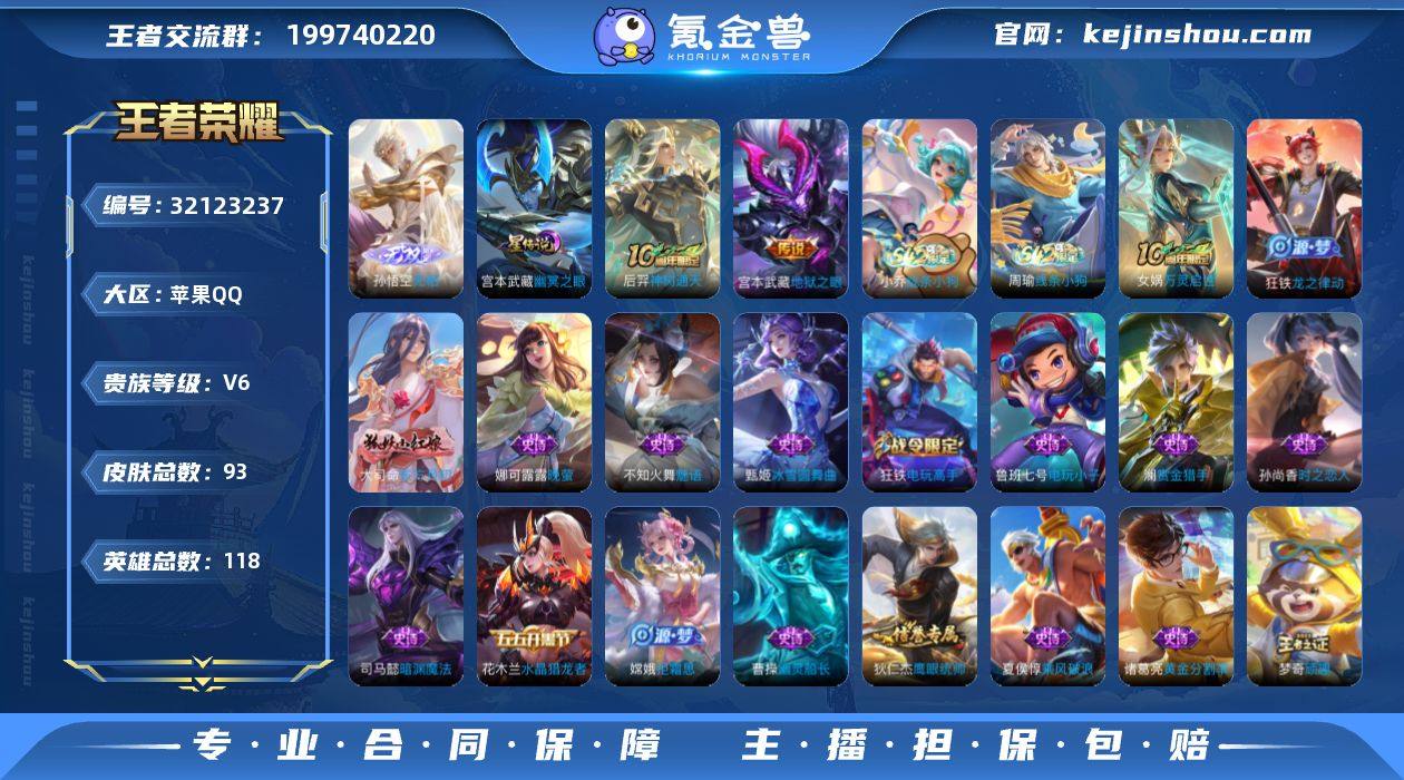 KF18393【1省标/司马懿 1星传/宫本武藏-幽冥之眼 4按键】【段位以实际上号为准 截图段位并不代表实际段位!!!】 实名: 可修改 贵族等级: V6 英雄数: 118 皮肤数: 93 无双皮: 无相 星传说: 幽冥之眼 传说皮: 地狱之眼,神树通天