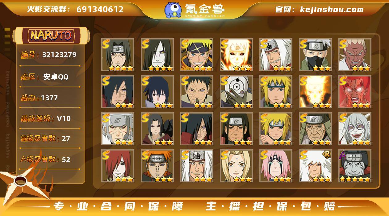 27S级忍者数-52A级忍者数 【S级忍者】:长门「秽土转生」(3星),猿飞日斩「秽土转生」(3星),波风水门「秽土转生」(3星),千手扉间「秽土转生」(3星),千手柱间「秽土转生」(3星),宇智波鼬「秽土转生」(3星),宇智波斑「秽土转生」(3星),宇智波斑「秽土转生·解」(3星),春野樱「忍界大战」(3星),宇智波带土「忍界大战」(3星),艾「忍界大战」(3星),宇智波鼬「须佐能乎」(4星),旗木卡卡西「须佐能乎」(3星),自来也(3星),自来也「舞之豪杰」(3星),大蛇丸(4星),自来也「传说中的三忍」(3星),纲手(3星),波风水门(3星),药师兜「仙人模式」(3星),漩涡鸣人「九喇嘛连结」(3星),迈特凯「死门」(3星),佩恩「天道」(3星),宇智波佐助「永恒万花筒」(3星),宇智波斑 「白面具」(3星宇智波斑「白面具」),波风水门「九喇嘛连结」(3星),漩涡鸣人·宇智波佐助(3星) 【A级忍者】:艾「青年」(2星),长门「青年」(2星),波风水门「青年」(2星),达鲁伊「博人传」(2星),迪达拉(2星),迪达拉「秽土转生」(2星),大蛇丸「晓」(2星),奇拉比(2星),奇拉比「忍界大战」(2星),飞段(4星),飞段「死司凭血」(2星),干柿鬼鲛(5星),漩涡博人「桃式显现」(2星),漩涡鸣人「仙人模式」(3星),漩涡鸣人「九尾查克拉」(2星),迈特凯(5星),旗木卡卡西「万花筒写轮眼」(2星),旗木卡卡西「幻之真容」(2星),我爱罗「疾风传」(4星),我爱罗「忍界大战」(2星),蝎(4星),蝎「绯流琥」(2星),小南(2星),角都(2星),角都「地怨虞」(2星),猿飞阿斯玛(5星),猿飞阿斯玛「秽土转生」(2星),宇智波止水(2星),宇智波止水「新春限定」(2星),宇智波鼬(3星),宇智波鼬「新春限定」(2星),宇智波佐助「须佐能乎」(2星),宇智波佐助「万花筒写轮眼」(2星),药师兜「半蛇斗篷」(2星),药师兜「侠隐江湖」(2星),照美冥「五代目水影」(2星)...