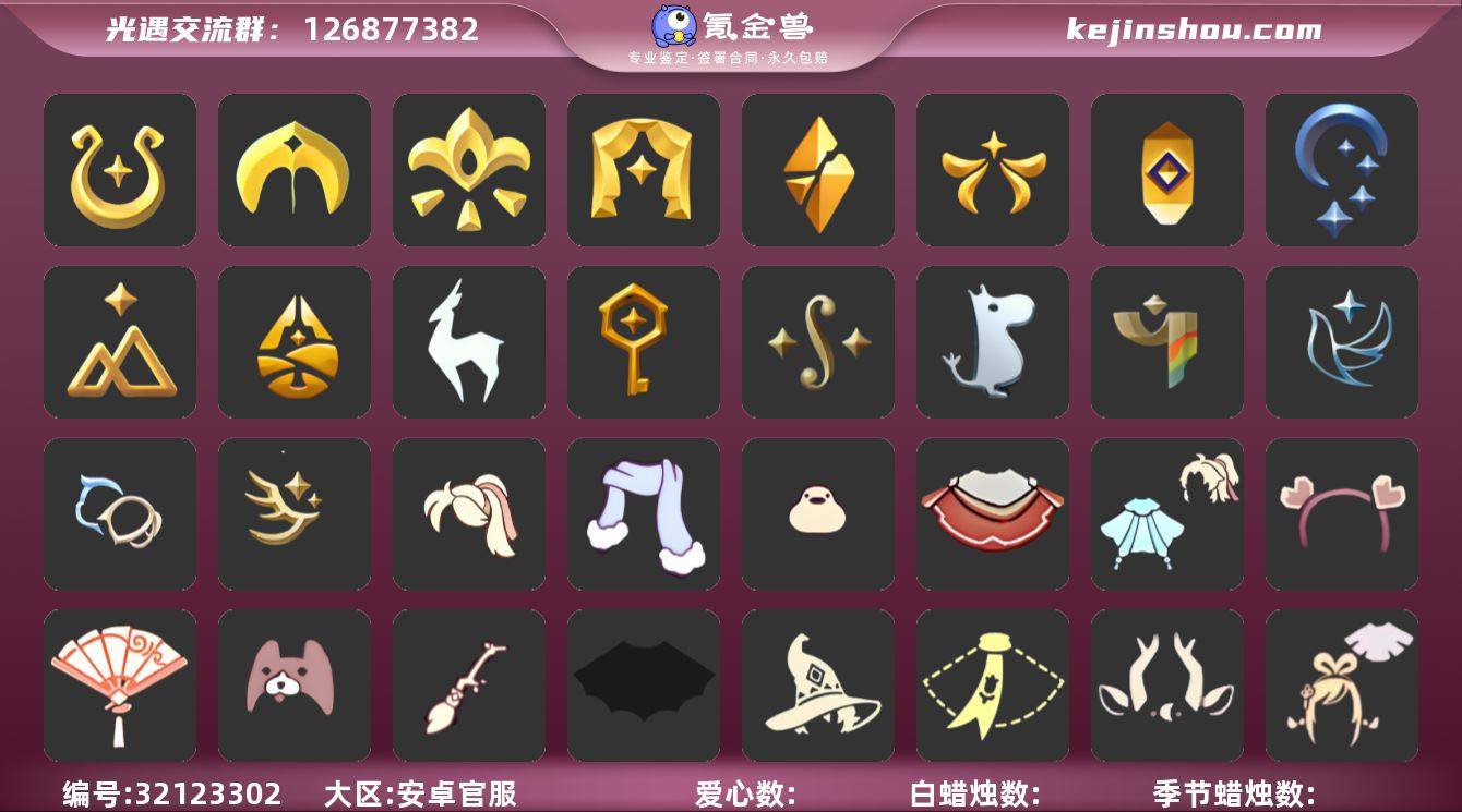 账号类型: 手机账号 季节已毕业: 魔法季,圣岛季,表演季,破晓季,欧若拉季,集结季,夜行季,追忆季,拾光季,归巢季,九色鹿季,筑巢季,二重奏季,姆明季,彩染季,青鸟季,双星季,迁徙季 完成地图: 雨林,霞谷,暮土 珍稀物品: 白枭,透明蝶翼斗,魔法季耳坠 礼包: 蝙蝠套,巫师,围巾,九色鹿角,绊爱,鹿角,兔子鞋,大耳狗发饰,茶壶,白绒金,瑞雪,福娃,吉他,奔跑裤子,人声乐器,橘子,黄伞,红伞,兔子,南瓜,枯角,水母,猫套,星月头饰,彩虹耳钉,彩虹耳机,新年裤,四叶草,暗彩装扮,新年耳钉,创始人,海蓝波浪发型,线框斗,恶作剧飞行扫帚,献瑞折扇礼包,心心相印发饰礼包,小狗周年发饰,青衫落拓礼包,缤纷飘带斗篷礼包,小黄鸭发饰礼包,冬日围巾斗篷,宝骏丹心马尾礼包 裤子: 武士裤,背带裤,白棉裤,搓澡巾 面具: 黄鼠狼,红狐狸 面饰: 魔法季耳坠,红耳机,黑框眼镜 项链: 围巾 发型: 蝴蝶结,正太,樱花,公主头,虚荣,猫耳,白枭 头饰: 花环 斗篷: 白金,红金,白鸟斗,花瓣斗篷,荧蓝斗篷 配饰: 雨伞,排箫,高音钢琴,吉他,笛子,大铃铛乐器,乐器 亮点: 重塑药水101,有织光季季卡