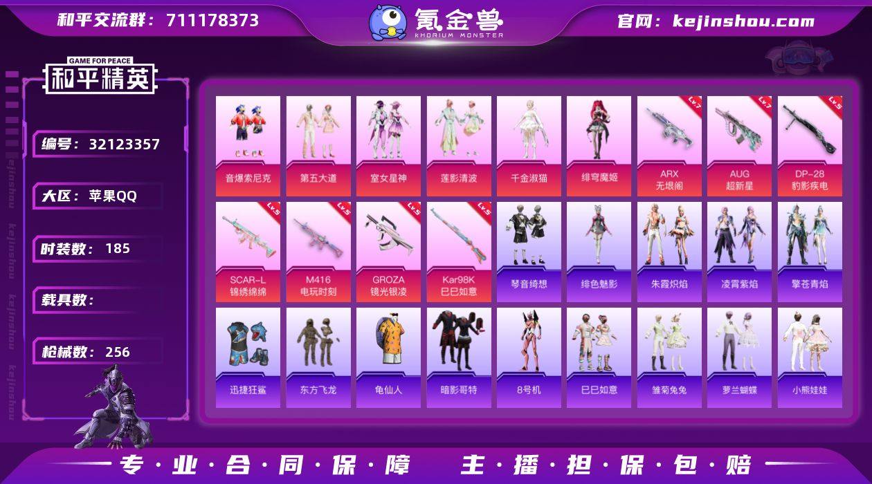 苹果【小号/暗影哥特 粉螳螂】 手Q-6粉装-7特效枪-0载具-1粉色飞行器-74690热力值-17王牌印记-185套装-256枪皮 【热门品类】:粉装-音爆索尼克,套装-龟仙人,套装-暗影哥特,角色-8号机 【粉色套装】:粉装-音爆索尼克,粉装-第五大道,粉装-室女星神,粉装-莲影清波,角色-千金淑猫,角色-绯穹魔姬 【粉色枪皮等级】:SCAR-L-锦绣绵绵(五级),M416-电玩时刻(五级),GROZA-镜光银凌(五级),AUG-超新星(七级),ARX-无垠阁(七级),Kar98K-巳巳如意(五级),DP-28-豹影疾电(五级) 【粉色枪皮】:SCAR-L-锦绣绵绵,M416-电玩时刻,GROZA-镜光银凌,AUG-超新星,ARX-无垠阁,Kar98K-巳巳如意,DP-28-豹影疾电 【粉色飞行器】:太空嘟嘟飞行器 【粉色降落伞】:幻梦音符降落伞,筑梦精灵降落伞,旋转彩虹降落伞,拂晓神骑降落伞,莲影清波降落伞,圣堂之誓降落伞,江南烟雨降落伞,创世·救赎降落伞,初号机 觉醒Ver.降落伞,金丰海韵降落伞,千金淑猫降落伞,月影灵韵降落伞,绯穹魔姬降落伞,炫彩糖果降落伞 【稀有套装】:套装-龟仙人,套装-巳巳如意,套装-雏菊兔兔,套装-萝兰蝴蝶,套装-小熊娃娃,角色-达芬奇,套装-火种守卫者,套装-糖糖葫芦,套装-青团波波,套装-棉花软糖,角色-怀庆长公主,套装-燕燕于飞,套装-鱼渊荷华,角色-海琴烟,套装-彩虹兔,套装-云朵鹅,套装-雪绒豹,角色-乐音,角色-绛羽幽主,角色-夜瞳黯灵,套装-折梦之诗,套装-朱霞炽焰,套装-凌霄紫焰,套装-擎苍青焰,角色-绯色魅影,套装-琴音绮想 【稀有枪皮】:AKM-夜灯,AKM-奇异狩猎者,AKM-彩虹符号,AKM-灼热熔岩,AKM-破晓战魂,AKM-霓虹街区,AKM-龙的传人,M16A4-幻世战舞者,M16A4-甜心亚梦,M16A4-信仰神谕,M16A4-千金淑猫,SCAR-L-夜灯,SCAR-L-炫彩节奏,SCAR-L-玉兔迎春,SCAR-L-碧影闪光,SCAR-L-红色方程式,M416-糯团青...