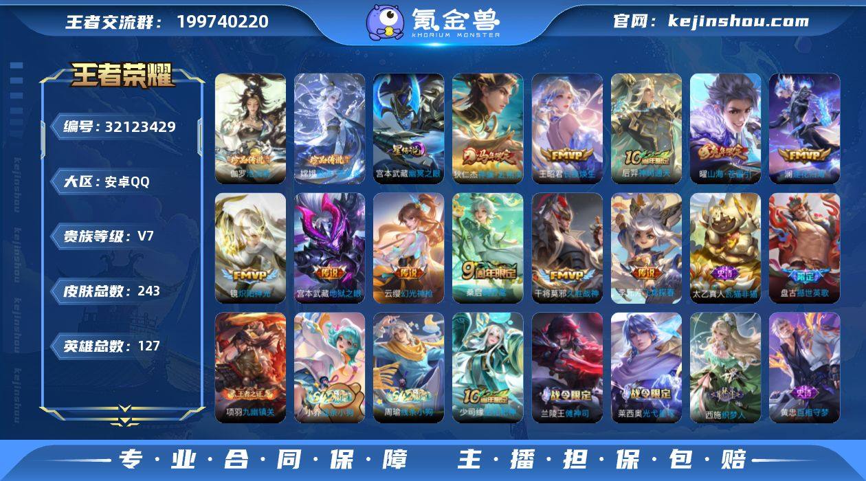 KF18397【1省标/蒙犽 7市标 1星传/幽冥之眼 14按键 】【段位以实际上号为准 截图段位并不代表实际段位!!!】实名: 不可修改 贵族等级: V7 英雄数: 127 皮肤数: 243 珍品传说: 器灵·落星盏,沧流箭 星传说: 幽冥之眼 传说皮: 久胜战神,炽阳神光,地狱之眼,飞鸢探春,山海·苍雷引,澜逐花归海,幻光神枪,神树通天,长夜焕生,神骥·赴朔漠 限定皮: 李小龙,梁祝,寅虎·御盾,青龙志,高山流水,猪悟能,五谷丰年,山海·玄木吟,鸣野蒿