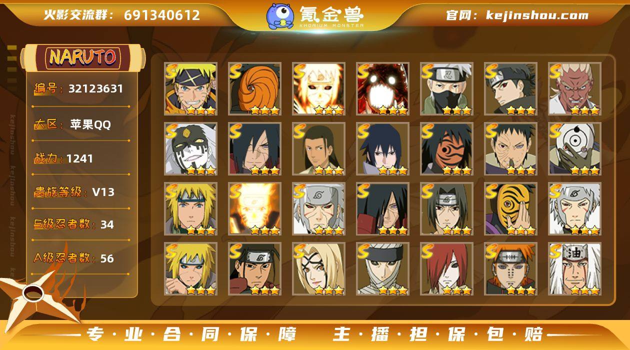 【精品多点券A】s1225 战力 1241w 34s 56a 熊猫 二尾 11个198点券A 4100金币+33高招券 侠隐纲手+新春鼬时装 25忍法帖可开 60片传说自来也 67片三代火影 50片三代雷
