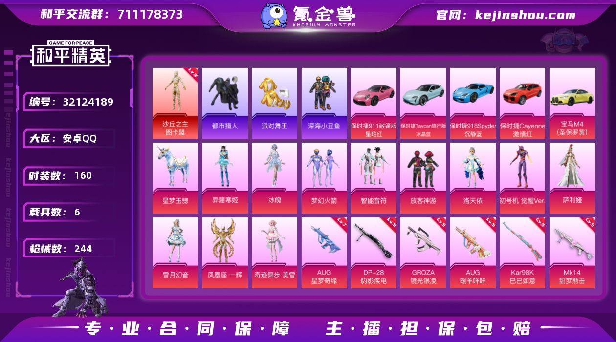 【3级图卡盟 都市 金鞋 新101 放客 7级AUG星梦 6把计数枪 满地铁天赋】YXc26997-【可二次】【因赛季更新游戏段付以上号为准!】 安卓Q-1红装6稀有6载具11粉装16特效枪18热门160套装244枪皮 12印记 历史卓越王牌18星 【1红装】 沙丘之主-图卡盟 (3级) 【6稀有】 S1赛事外套 AWM-黄金龙骨 AKM-缤纷海域 都市猎人 派对舞王 派对舞王(金靴子) 【6载具】 保时捷Cayenne(激情红) 保时捷918Spyder(沉静蓝) 保时捷Taycan旅行版(冰晶蓝) 保时捷911敞篷版(星珀红) 宝马M4(圣保罗黄) 星梦玉骢 【12粉装】 冰魄 觉醒初号机 梦幻火箭 萨利娅 奇迹舞步美雪 凤凰座一辉 洛天依 雪月幻音 异瞳寒姬 智能音符 放客神游 谜鸦审判 【16特效枪】 SCAR-L-时空协奏 (3级) P90-魔童闹海敖丙 (3级) M416-女娲灵识 (3级) AKM-魔法神域 (3级) AKS-74U-无垠阁 (3级) Kar98K-巳巳如意 (5级) DP-28-豹影疾电 (5级) AUG-暖羊咩咩 (5级) AUG-星梦奇缘 (7级) ARX-无垠阁 (4级) Mk14-甜梦熊击 (5级) M24-镜域双华 (3级) GROZA-镜光银凌 (5级) MG3-洛神天依 (3级) Mk14-福马献瑞 (1级) ACE32-萌骑漫游 (4级) 【18热门】 8号机 Mark.06 小丑鱼 爱崽白熊 鹰眼刺客 迅捷狂鲨 深海小丑鱼 TT战队服 团圆交子 瑞龙福将 粉红小猪 豚鼠丹丹 漫步者 极速红龙 军刀雅典娜 英勇保护者 弄潮海豚 M762-瑞龙福将 【1飞行器】 龙翔九天飞行器 【1头盔】 梦幻火箭头盔 【1背包】 梦幻火箭背包