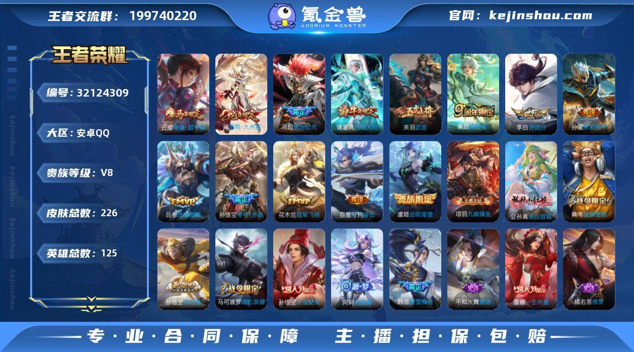 安卓Q-V8-226皮肤-13传说-52史诗 【传说皮肤】:云缨神骥越千峰,澜愿照九州拓,桑启鸣野蒿,马超琥珀纪元,吕布怒海麟威,李白诗剑行,百里守约碎云,孙策末日机甲,诸葛亮时雨天司,虞姬启明星使,孙悟空零号赤焰,关羽武圣,花木兰冠军飞将 【限定皮肤】:姜子牙天穹之誓,狄仁杰阴阳师,赵云皇家上将,鲁班七号狮舞东方,庄周高山流水,高渐离玩趣恶龙,阿轲迷踪丽影,钟无艳王者之锤,芈月重明,元歌无心,夏侯惇朔风刀,曹操烛龙,典韦穷奇,典韦蓝屏警告,马可波罗暗影游猎,狄仁杰魔术师,狄仁杰万华元夜,达摩沙漠行僧,项羽海滩派对,老夫子醍醐杖,关羽武圣,程咬金演武夺筹,露娜一生所爱,刘邦夺宝奇兵,韩信傲雪梅枪,兰陵王金庭之子,孙悟空大圣娶亲,孙悟空零号赤焰,孙悟空孙行者,牛魔御旌,李元芳云中旅人,虞姬启明星使,钟馗神迹守卫,钟馗驱傩正仪,女娲朔望之晖,雅典娜单词大作战,雅典娜黎明之约,鬼谷子原初探秘者,鬼谷子五谷丰年,诸葛亮时雨天司,苏烈千军破阵,百里玄策原初追逐者,弈星混沌棋,梦奇顽趣,沈梦溪大漠名商,明世隐疑决卦,裴擒虎李小龙,裴擒虎擒涛扼浪,狂铁御狮,米莱狄御霄,盾山御銮,猪八戒西部大镖客,上官婉儿梁祝,蒙犽狂想玩偶喵,鲁班大师探海日志,桑启海盐诗旅,张良古海寻踪,蒙恬荣光圣徽,鬼谷子天穹祈灯,马超琥珀纪元,沈梦溪龙舞盛年,刘邦剑破天穹,刘备异域游侠 【年限皮肤】:诸葛亮时雨天司,澜愿照九州拓 【赛季限定】:曹操烛龙,芈月重明,典韦穷奇,狂铁御狮,米莱狄御霄,牛魔御旌,盾山御銮,夏侯惇朔风刀,弈星混沌棋,明世隐疑决卦,老夫子醍醐杖,鬼谷子原初探秘者,狄仁杰万华元夜,程咬金演武夺筹,钟馗驱傩正仪,苏烈千军破阵,达摩沙漠行僧,兰陵王金庭之子,沈梦溪大漠名商,李元芳云中旅人,桑启海盐诗旅,裴擒虎擒涛扼浪,鲁...
