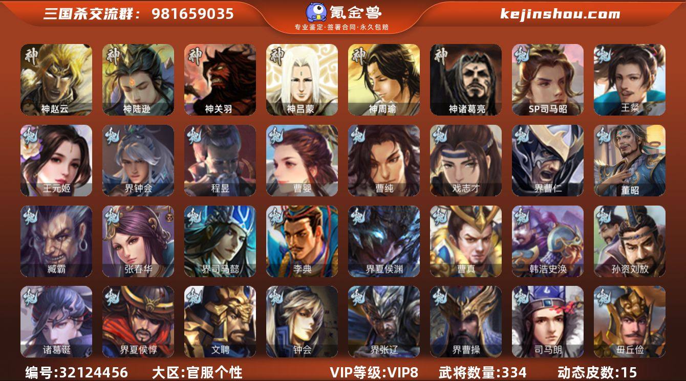神赵云,神陆逊,神诸葛亮,SP司马昭,王粲,王元姬,界钟会,曹婴,曹纯,戏志才,程昱,诸葛瞻,张星彩,界黄忠,骆统,界朱然,界徐盛,界步练师,左慈,张让,麹义,沮授,卑弥呼,兀突骨,士燮,神吕蒙,神周瑜,神关羽,SP关羽,SP曹仁,SP蔡文姬,乐进,曹昂,诸葛诞,朱灵,文聘,SP姜维,张春华,钟会,曹冲,郭淮,满宠,界王异,界曹操,界司马懿,界夏侯惇,界张辽,界许褚,界郭嘉,李典,曹真,韩浩史涣,陈群,曹叡,曹休,钟繇,司马朗,王基,李通,郭皇后,孙资刘放,辛宪英,吕虔,鲁芝,界典韦,界荀彧,杜畿,界曹丕,毌丘俭,界邓艾,界曹植,界满宠,卞夫人,华歆,蔡贞姬,毛玠,阮慧,谋徐晃,界曹休,界夏侯渊,界曹仁,臧霸,唐咨,董昭,SP孙尚香,关银屏,夏侯霸,马良,关兴张苞,廖化,界马岱,关平,简雍,刘封,界法正,界关兴张苞,界刘备,界关羽,界张飞,界赵云,界马超,SP徐庶,吴懿,周仓,张松,刘谌,夏侯氏,糜竺,马忠,孙乾,李严,黄皓,吴苋,秦宓,界黄月英,界诸葛亮,赵统赵广,严颜,界伊籍,界卧龙诸葛,界庞统,界祝融,陈到,界姜维,吕凯,杨仪,邓芝,陈震,费祎,糜夫人,界周仓,宗预,彭羕,谋庞统,谋黄月英,诸葛果,界魏延,蒋琬费祎,糜芳傅士仁,甘夫人,鲁肃,孙茹,凌操,大乔小乔,诸葛恪,诸葛瑾,孙鲁育,程普,韩当,潘璋马忠,虞翻,朱然,界周泰,界甘宁,界吕蒙,界黄盖,界周瑜,界大乔,界陆逊,孙鲁班,朱桓,顾雍,孙休,朱治,全琮,步骘,孙登,岑昏,徐氏,薛综,界孙权,界孙尚香,潘濬,陆绩,严畯,界孙坚,吕岱,周鲂,周妃,界孙策,界张昭张纮,界吴国太,界韩当,桥公,陈武董袭,蒋钦,谋吕蒙,谋周瑜,界朱治,谋小乔,界小乔,蔡文姬,伏完,刘协,界袁术,SP赵云,SP貂蝉,张宝,界华雄,伏皇后,李儒,界于吉,界张角,华雄,袁术,界华佗,界吕...