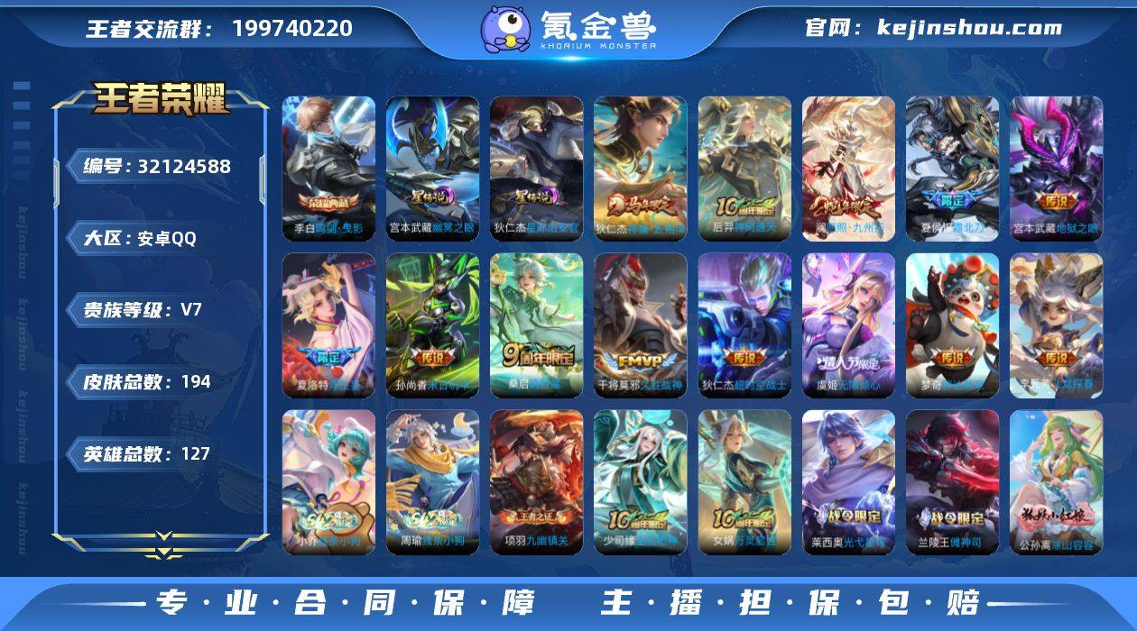 贵族等级:V7 典藏皮肤数:1 珍品无双皮肤数:0 无双皮肤数:0 珍品传说皮肤数:0 传说皮肤数:13 史诗皮肤数:59 皮肤数:194 英雄数:127 段位:无双王者 卖家说:李白典藏,12传说