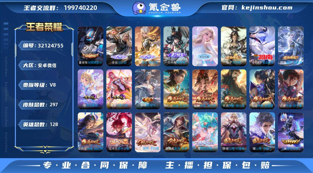 YX11310 安卓微信 V8 297皮 1典藏4无双3珍品传说 马限全套【神骥仙使主页 巅峰1275 打野49段 9热门金标】2星元117限定32传说 1.2W战力金标曜 1W战力金标墨子 21按键1天幕 6272星币 694英雄碎片 24印记 16荣耀印记 营地号:430362394 【珍品传说】怪盗基德,器灵·落星盏, 【无 双】离恨烟,甄姬雪境奇遇,器灵·螭龙剑,问心剑, 【荣耀典藏】无限飓风号, 【星元皮肤】时之愿境,无限倾慕, 【热门限定】神骥·镇沧海,神骥·鸣幻洲,神骥·赴朔漠,神骥·越千峰,神骥·逐星野,神骥·聚万邦,千劫归真,愿照·岁时盈,器灵·浮梦炉,逐花归海,乘龙·铭钟鼎,武圣,千劫归真,异界灵契,寅虎·赤拳,时之奇旅,时之祈愿男,时之祈愿女,时之奇旅,山海·玄木吟,山海·炽霜斩,山海·苍雷引,冰霜神祇,无限倾心女,燃星之曲,鹤归松栖男,鹤归松栖女,启明星使,百相守梦张飞,埋骨钱, 【限定传说】玄雷天君,拒霜思,猫狗日记男,云鹰飞将,孙行者,暗夜猫娘,时之恋人女,修罗,冠军飞将,龙骑士,梁祝,未来纪元,神迹守卫,炽阳神光,黄金射手座,音你闪耀,晚萤,末日机甲男,遇见神鹿,原初探秘者,原初追逐者,黎明之约,暗隐猎兽者,金属风暴,特工魅影,曙光守护者,映山客,白龙吟,幻光神枪,圣诞恋歌,逐浪之夏,心灵战警,功夫厨神,心灵骇客,幽灵船长,乘风破浪,圣诞狂欢,星夜王子,永昼,节奏热浪,绅士熊喵,偶像歌手,街头霸王,无畏之灵·狰,摇滚巨星,鬼剑武藏,德古拉伯爵,云间偶戏,冰冠公主,狂想玩偶喵,单词大作战,花好人间,御狮,御霄,御旌,疑决卦,醍醐杖,万华元夜,东方不败,霸王丸,敏锐之力,丁香结,科学大爆炸,炽阳神光,诗剑行,锁墨魂,舞狮寰,赤刃凌霄,
