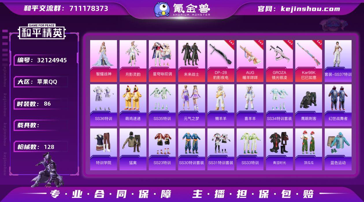 【M4黄金龙骨4粉装5特效枪 秒换绑不用等】 苹果Q区-33671热力值-86套装-128枪皮 【2稀有】 M416-黄金龙骨 AWM-黄金龙骨【4粉装】 未来战士 角色-智耀战神 角色-月影灵韵 星穹咏叹调【5特效枪】 Mk14-福马献瑞(5级) Kar98K-巳巳如意(5级) AUG-暖羊咩咩(5级) GROZA-镜光银凌(5级) DP-28-豹影疾电(5级)【123热门】 鹰眼刺客 M416-快乐主宰 白色伏地魔 SS27特训 SS26特训 SS23特训 M24-未来战士 M762-天降萌叽 Mk47-乌木金纹 UMP45-蓝色火焰 DBS-彩虹符号 MG3-幻世战舞者 M16A4-快乐主宰 M416-蓝色火焰 M762-快乐主宰 长空猛禽 特训学院 青涩时光 青年教官 懵萌河马 魅力单车 蓝色运动 竞技达人朋克 黄色运动 漫步者 黄色伏地魔 红色运动 黑色伏地魔 冰爽海盐 粉红小猪 S1897-糯团青竹 蓝调潮影 P90-紫矿核心 顶瓜瓜 Vector-荒原烈焰 GROZA-福马献瑞 恋语绒绒 SS34特训 烈火街头 星影赞美诗 福马献瑞 SS21特训 SS29特训 SPAS-12-罪夜之冕 破片手榴弹-爆破雪人 SS30特训 ACE32-冰晶雪宝 青团波波 俏兔智灵 鱼渊荷华 光矢逐梦 糖糖葫芦 PKM-啾咪啾咪 燕燕于飞 SS31特训 SS33特训 SS32特训 巳巳如意 MG3-霓彩脉冲 SS36特训 TT战队服 老实芭蕉 智谋强哥 战术大师 蜜獾-启元战纹 短管霰弹-星穹咏叹调 狙击之神 M416-糯团青竹 Kar98K-彩虹符号 AWM-恐龙拽拽 MK20-H-星途旅人 Mk14-薄荷星砂 AMR-喜羊羊与灰太狼 MG3-乌木金纹 Mini14-香桃花海 破片手榴弹-巳巳如意 SCAR-L-星途旅人 蝎式手枪-千金淑猫 DBS-幽焰骑士 TMP-9-幽焰骑士 UMP45-绒宝小鹅 烟雾弹-冰氧夏日 DBS-月影灵韵 SS35特训 蜜獾-糖糖葫芦 平底锅-糖糖葫芦 野牛-燕燕于飞 AUG-月影灵韵 UMP45-糖糖葫芦 星途旅人 UZ