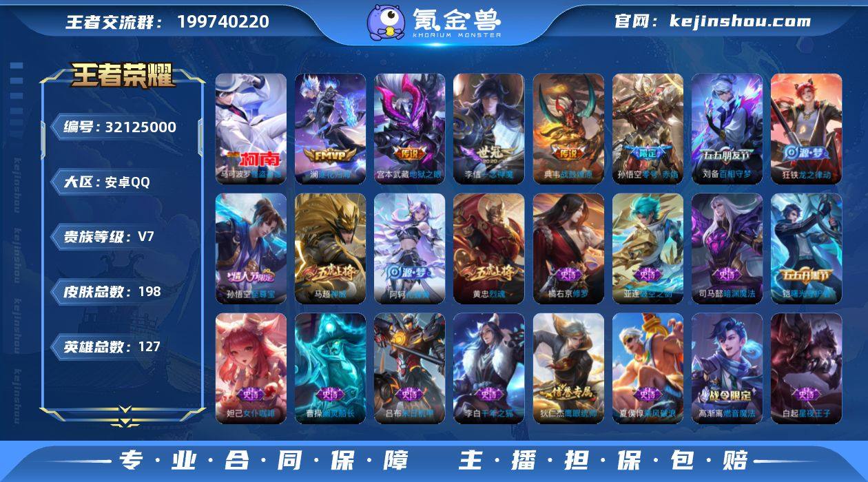 ·愿照九州拓·战鼓燎原·逐花归海·齐天大圣·零号赤焰·一念神魔·神威·至尊宝·烈魂·可二次】w18049-安卓Q-127英雄-198皮肤-5王者印记-170铭文-贵族积分2w【贵族7】【1珍品·9传说·7按键】【因赛季更新游戏段付以上号为准!】 【珍品传说】:马可波罗怪盗基德 【传说皮肤】:后羿神树通天,澜愿照九州拓,桑启鸣野蒿,典韦战鼓燎原,澜逐花归海,孙悟空齐天大圣,孙悟空零号赤焰,李信一念神魔,宫本武藏地狱之眼 【限定皮肤】:大乔绒语心约,姜子牙天穹之誓,狄仁杰阴阳师,赵云皇家上将,嬴政白昼王子,元歌无心,狄仁杰魔术师,达摩沙漠行僧,项羽海滩派对,兰陵王金庭之子,孙悟空至尊宝,孙悟空零号赤焰,孙悟空齐天大圣,刘备百相守梦,李元芳云中旅人,钟馗驱傩正仪,干将莫邪胡桃夹子,鬼谷子五谷丰年,黄忠烈魂,百里玄策原初追逐者,沈梦溪大漠名商,裴擒虎擒涛扼浪,上官婉儿梁祝,鲁班大师探海日志,桑启海盐诗旅,阿古朵江河有灵,张良古海寻踪,高渐离燃音魔法,妲己灵卜魔法,鬼谷子天穹祈灯,沈梦溪龙舞盛年,刘邦剑破天穹,周瑜熔金海岸 【年限皮肤】:澜愿照九州拓 【赛季限定】:钟馗驱傩正仪,达摩沙漠行僧,兰陵王金庭之子,沈梦溪大漠名商,李元芳云中旅人,桑启海盐诗旅,裴擒虎擒涛扼浪,鲁班大师探海日志,张良古海寻踪,鬼谷子天穹祈灯,刘邦剑破天穹,姜子牙天穹之誓,东皇太一噬灭天穹,太乙真人谧流熔炉,钟馗虚灵犬护,甄姬逆浪荇歌,亚瑟荣光之誓,百里玄策原初追逐者,项羽九幽镇关 【战令限定】:嬴政白昼王子,高渐离燃音魔法,妲己灵卜魔法,亚连破空之剑,孙悟空神迹守卫,莱西奥光弋星穹,明世隐往忆晖光 【史诗皮肤】:项羽九幽镇关,少司缘巫礼祀神,女娲万灵启世,莱西奥光弋星穹,公孙离涂山容容,狂铁龙之律动,阿轲化蝶舞,弈星万物之道,马可波罗星界特工,亚连破空之剑,...