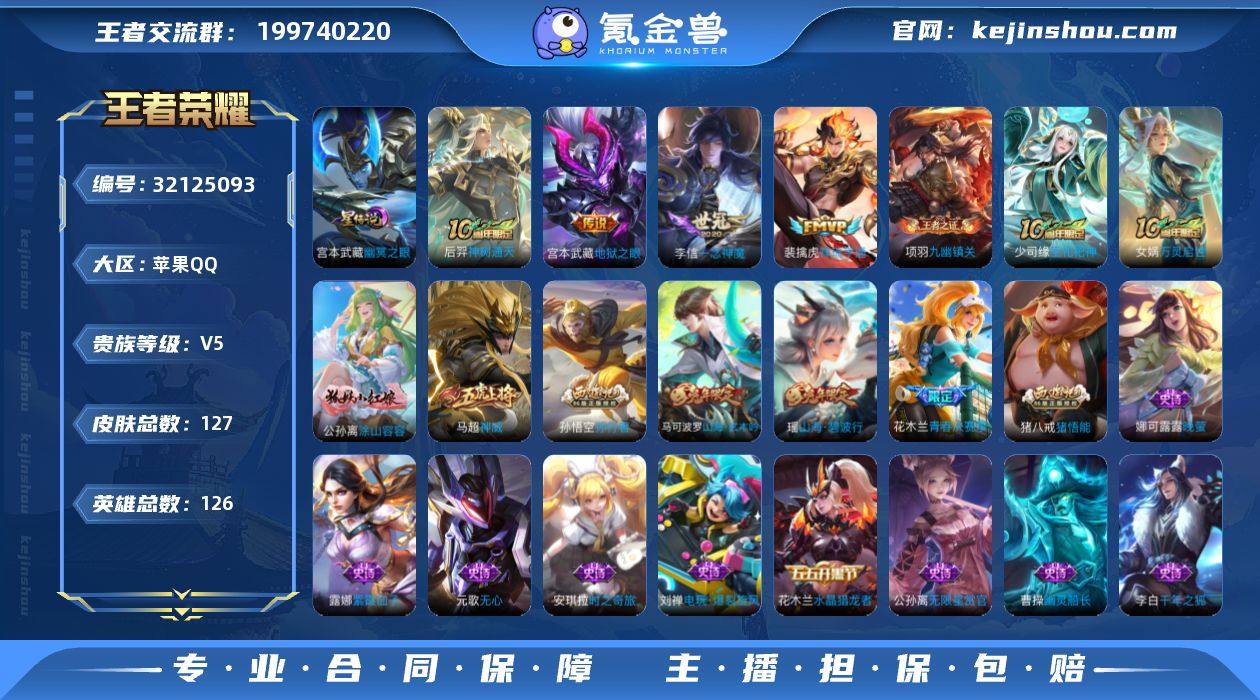可换绑【小国标花木兰·对抗路40段·5金标·神威·孙行者·青春决赛季】1按键,1星传说,14王者印记,五级铭文120,可二次KK9567,苹果Q-V5-127皮肤-4传说-44史诗【英雄全皮】:孙权全皮【小国标】:小国标花木兰【星元皮肤】:宫本武藏幽冥之眼【传说皮肤】:后羿神树通天,裴擒虎祥瑞亨通,李信一念神魔,宫本武藏地狱之眼【限定皮肤】:姜子牙天穹之誓,狄仁杰阴阳师,赵云皇家上将,墨子神迹守卫,庄周高山流水,元歌无心,马可波罗山海玄木吟,达摩沙漠行僧,项羽海滩派对,老夫子航海奇遇记,兰陵王金庭之子,花木兰青春决赛季,孙悟空孙行者,后羿圣弓游侠,李元芳云中旅人,钟馗驱傩正仪,干将莫邪胡桃夹子,干将莫邪真爱魔法,雅典娜黎明之约,苏烈千军破阵,百里玄策原初追逐者,梦奇顽趣,沈梦溪大漠名商,裴擒虎擒涛扼浪,瑶山海碧波行,猪八戒猪悟能,鲁班大师探海日志,镜匿光追影者,桑启海盐诗旅,张良古海寻踪,蒙恬荣光圣徽,鬼谷子天穹祈灯【年限皮肤】:瑶山海碧波行,马可波罗山海玄木吟【赛季限定】:钟馗驱傩正仪,苏烈千军破阵,达摩沙漠行僧,兰陵王金庭之子,沈梦溪大漠名商,李元芳云中旅人,桑启海盐诗旅,裴擒虎擒涛扼浪,鲁班大师探海日志,张良古海寻踪,鬼谷子天穹祈灯,姜子牙天穹之誓,钟馗虚灵犬护,甄姬逆浪荇歌,亚瑟荣光之誓,百里玄策原初追逐者,雅典娜黎明之约,梦奇顽趣,蒙恬荣光圣徽,项羽九幽镇关【战令限定】:老夫子航海奇遇记,墨子神迹守卫,干将莫邪真爱魔法,后羿圣弓游侠【史诗皮肤】:项羽九幽镇关,少司缘巫礼祀神,女娲万灵启世,公孙离涂山容容,蒙恬荣光圣徽,刘禅电玩爆裂旋风,瑶山海碧波行,马可波罗山海玄木吟,梦奇顽趣,元歌无心,雅典娜黎明之约,镜匿光追影者,庄周高山流水,猪八戒猪悟能,孙悟空孙行者,安琪拉时之奇旅,干将莫邪真爱魔法,老夫子...