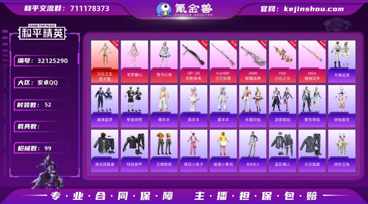【3级图卡盟 满地铁天赋】YXc26984-【无二次】【因赛季更新游戏段付以上号为准!】 安卓Q-1红装3粉装9特效枪1热门52套装99枪皮 5印记 历史绝世王牌23星 【1红装】 沙丘之主-图卡盟 (3级) 【3粉装】 虎痴许褚 雪月幻音 羊梦糖心 【8特效枪】 P90-沙丘之主 (3级) AKS-74U-森灵之息 (5级) Kar98K-巳巳如意 (5级) DP-28-豹影疾电 (5级) AMR-智耀战神 (5级) M24-镜域双华 (2级) Mk14-福马献瑞 (5级) ACE32-萌骑漫游 (2级) 【1热门】 破蛋小黄鸡 【1飞行器】 龙翔九天飞行器 【1头盔】 甜心宝贝头盔 【1背包】 甜心宝贝背包