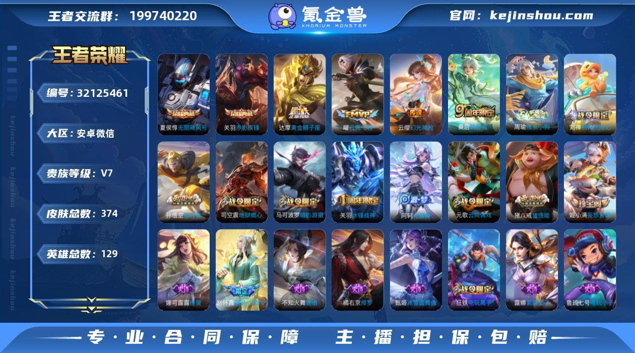 安卓WX-V7-永恒钻石II段位-129英雄-374皮肤-2典藏皮肤-1典藏英雄-4传说-110史诗 【英雄全皮】:刘禅全皮,孙权全皮,猪八戒全皮,敖隐全皮,戈娅全皮,空空儿全皮,影全皮 【荣耀典藏】:武则天英雄,夏侯惇无限飓风号,关羽赤影疾锋 【传说皮肤】:云缨幻光神枪,桑启鸣野蒿,曜云鹰飞将,达摩黄金狮子座 【限定皮肤】:白起狰,蒙犽顽岩魄,蔡文姬夏日便利店,虞姬夏日便利店,姜子牙天穹之誓,杨戬破阵退雄兵,狄仁杰阴阳师,虞姬凯尔特女王,赵云皇家上将,赵云百木心枪,墨子神迹守卫,嬴政优雅恋人,嬴政白昼王子,孙尚香蔷薇恋人,庄周高山流水,高渐离玩趣恶龙,阿轲迷踪丽影,钟无艳超时空战士,孙膑妖精王,扁鹊炼金王,扁鹊奇幻香踪,白起夜都怪侠,芈月幻夜卜梦,吕布猎兽之王,周瑜赤莲之焰,元歌云间偶戏,元歌无心,夏侯惇朔风刀,甄姬游园惊梦,甄姬落雪兰心,曹操烛龙,马可波罗暗影游猎,狄仁杰魔术师,狄仁杰万华元夜,达摩星际陆战队,达摩沙漠行僧,项羽海滩派对,老夫子醍醐杖,老夫子航海奇遇记,关羽冰锋战神,貂蝉逐梦之音,程咬金演武夺筹,刘邦夺宝奇兵,王昭君午后时光,兰陵王金庭之子,亚瑟潮玩骑士王,孙悟空孙行者,牛魔御旌,后羿圣弓游侠,李元芳银河之约,李元芳云中旅人,钟馗驱傩正仪,杨玉环遇见飞天,杨戬潮玩骑兵,干将莫邪真爱魔法,雅典娜单词大作战,雅典娜黎明之约,蔡文姬繁星吟游,太乙真人饕餮,鬼谷子原初探秘者,鬼谷子五谷丰年,黄忠火炮绅士,苏烈千军破阵,百里玄策原初追逐者,弈星混沌棋,梦奇顽趣,沈梦溪星空之诺,沈梦溪大漠名商,明世隐疑决卦,明世隐吟游魔法,裴擒虎李小龙,裴擒虎擒涛扼浪,狂铁御狮,狂铁电玩高手,米莱狄御霄,米莱狄胡桃异想国,云中君纤云弄巧,盾山御銮,猪八戒西部大镖客,猪八戒猪悟能,上官婉儿梁祝,嫦娥拒霜思,嫦娥暖冬...