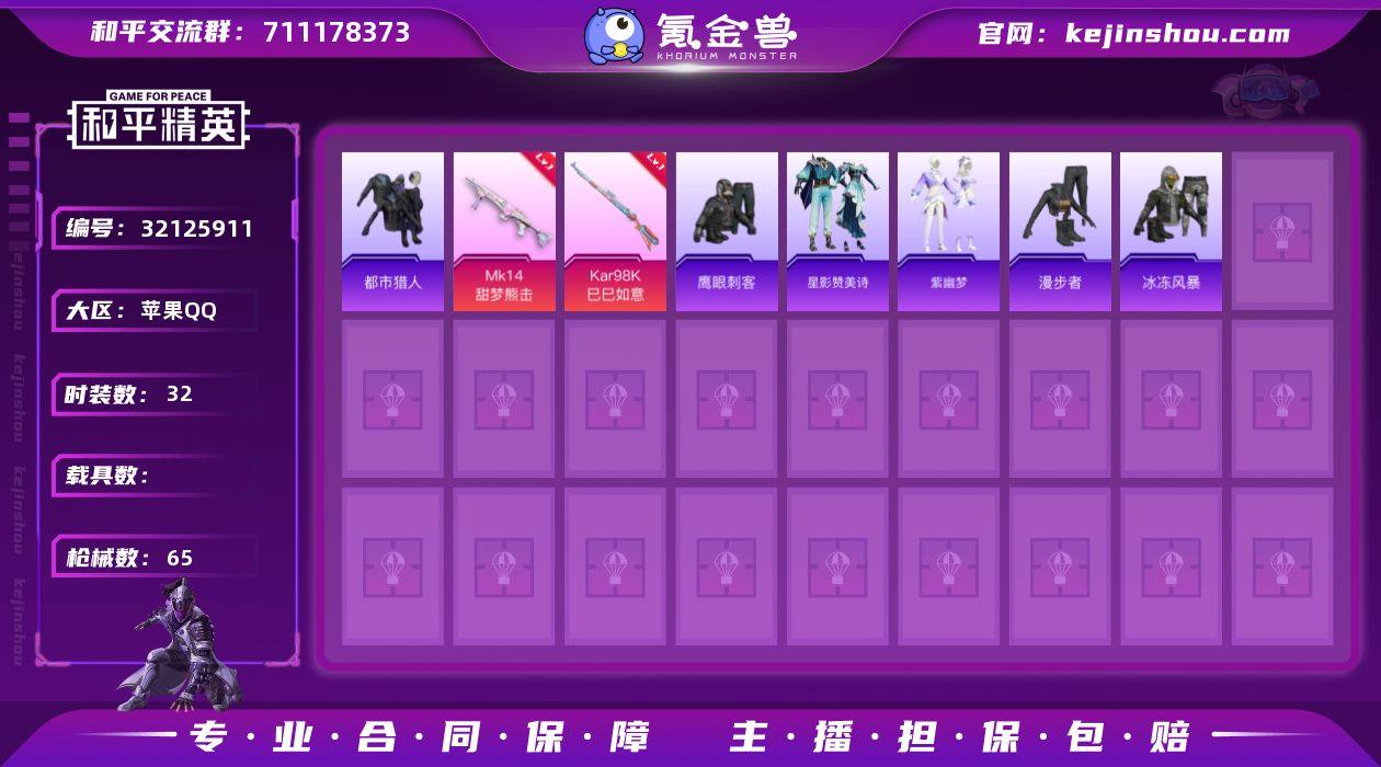 DSH2332【身法号7特 暗影哥特,都市猎人】苹果手Q-7特效枪-32套装-65枪皮-2王牌印记-超级王牌5星-16161热力值【7特效枪】AA12-G-萌骑幻想[3级],AKS-74U-森灵之息[5级],ACE32-萌骑漫游[2级],Kar98K-巳巳如意[5级],Mk14-福马献瑞[5级],UMP45-萌骑冒险[1级],Mk14-甜梦熊击[5级]【3稀有】暗影哥特,都市猎人,AWM-黄金龙骨【2飞行器】马上有福飞行器,云朵驼驼飞行器【1头盔】深海小丑鱼头盔【1背包】金羽特工背包【87其它衣服和枪皮】SS32特训,白熊同盟,漫步者,SS31特训,魔性柴柴,夏日倾情,狙击之神,燕燕于飞,鹤鸣,香桃花海,蓝冰羽,街头潮人,福马献瑞,星影赞美诗,冰冻风暴,马上有钱,缤纷果语,长空猛禽,鱼渊荷华,战术大师,SS37特训,鹰眼刺客,恋语绒绒,红釉青花,大橘大利,雨过天青,疯狂小兔子,紫幽梦,SS36特训,柠萌假日,燃烧瓶-甜梦桃焰,AKM-砺玉逐花,S1897-糯团青竹,GROZA-影袭,P90-玩趣呆呆,AC-VAL-天降萌叽,M16A4-雨过天青,沙漠之鹰-雨过天青,汤姆逊-炫彩节奏,平底锅-属我最6,蜜獾-启元战纹,SCAR-L-夜灯,S12K-夜灯,燃烧瓶-福马献瑞,AMR-雨过天青,S1897-紫幽梦,十字弩-异域银装,UZI-影袭,PKM-紫幽梦,SKS-炫彩节奏,AWM-天降萌叽,爆炸猎弓-花中眠,UMP45-生命誓言,G36C-星穹咏叹调,SCAR-L-炫彩节奏,Kar98K-影袭,M416-小财神当家,S686-橘柚倾心,SPAS-12-燕燕于飞,SCAR-L-玉兔迎春,平底锅-紫幽梦,Mk14-紫幽梦,十字弩-燕燕于飞,UZI-炫彩节奏,GROZA-福马献瑞,Vector-燕燕于飞,蝎式手枪-燕燕于飞,AKM-影袭,AA12-G-雨过天青,撬棍-冷漠罗丽,DP-28-彩虹符号,P92-紫幽梦,PKM-雨过天青,M24-天降萌叽,Vector-生命誓言,M24-炫彩节奏,M24-影袭,UMP45-夜灯,PKM-啾咪啾咪,野牛-燕燕于飞,