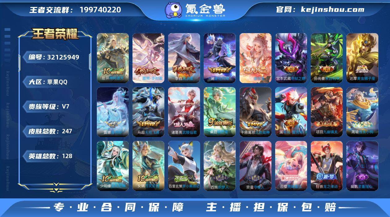 2456978 皇冠QQ号 金标云中君 绝版皮肤狮心王 圣诞老人 至尊宝 水晶280抽 苹果Q-V7-至尊星耀I段位-128英雄-247皮肤-14传说-68史诗 【英雄全皮】:孙权全皮,敖隐全皮,空空儿全皮,影全皮 【传说皮肤】:后羿神树通天,西施续相思,虞姬愿照岁时盈,桑启鸣野蒿,澜逐花归海,露娜霜月吟,澜电玩雷克斯,马超无双飞将,干将莫邪久胜战神,达摩黄金狮子座,诸葛亮武陵仙君,李白凤求凰,孙尚香末日机甲,宫本武藏地狱之眼 【限定皮肤】:白起狰,暃埋骨钱,姜子牙天穹之誓,杨戬破阵退雄兵,狄仁杰阴阳师,虞姬凯尔特女王,赵云皇家上将,庄周蜃楼王,庄周高山流水,孙膑妖精王,扁鹊炼金王,芈月重明,夏侯惇朔风刀,甄姬游园惊梦,曹操烛龙,典韦穷奇,马可波罗逐梦之星,狄仁杰魔术师,狄仁杰万华元夜,达摩沙漠行僧,项羽海滩派对,老夫子圣诞老人,老夫子醍醐杖,兰陵王金庭之子,亚瑟狮心王,孙悟空美猴王,孙悟空至尊宝,孙悟空大圣娶亲,牛魔御旌,李元芳云中旅人,杨玉环遇见飞天,蔡文姬繁星吟游,太乙真人饕餮,鬼谷子原初探秘者,鬼谷子五谷丰年,诸葛亮武陵仙君,苏烈千军破阵,百里玄策原初追逐者,弈星混沌棋,梦奇顽趣,沈梦溪大漠名商,明世隐疑决卦,裴擒虎李小龙,裴擒虎擒涛扼浪,狂铁御狮,云中君时之祈愿,盾山御銮,猪八戒猪悟能,上官婉儿梁祝,西施玲珑珍味,鲁班大师探海日志,桑启海盐诗旅,戈娅驭风魔法,艾琳女武神,阿古朵江河有灵,蒙恬荣光圣徽,鬼谷子天穹祈灯,沈梦溪龙舞盛年,刘邦剑破天穹,镜青焰无极,项羽苍威无极,周瑜熔金海岸 【年限皮肤】:孙悟空美猴王,李白凤求凰,虞姬愿照岁时盈 【赛季限定】:亚瑟狮心王,庄周蜃楼王,孙膑妖精王,扁鹊炼金王,虞姬凯尔特女王,白起狰,太乙真人饕餮,曹操烛龙,芈月重明,典韦穷奇,狂铁御狮,牛魔御旌,盾山御銮,夏侯...