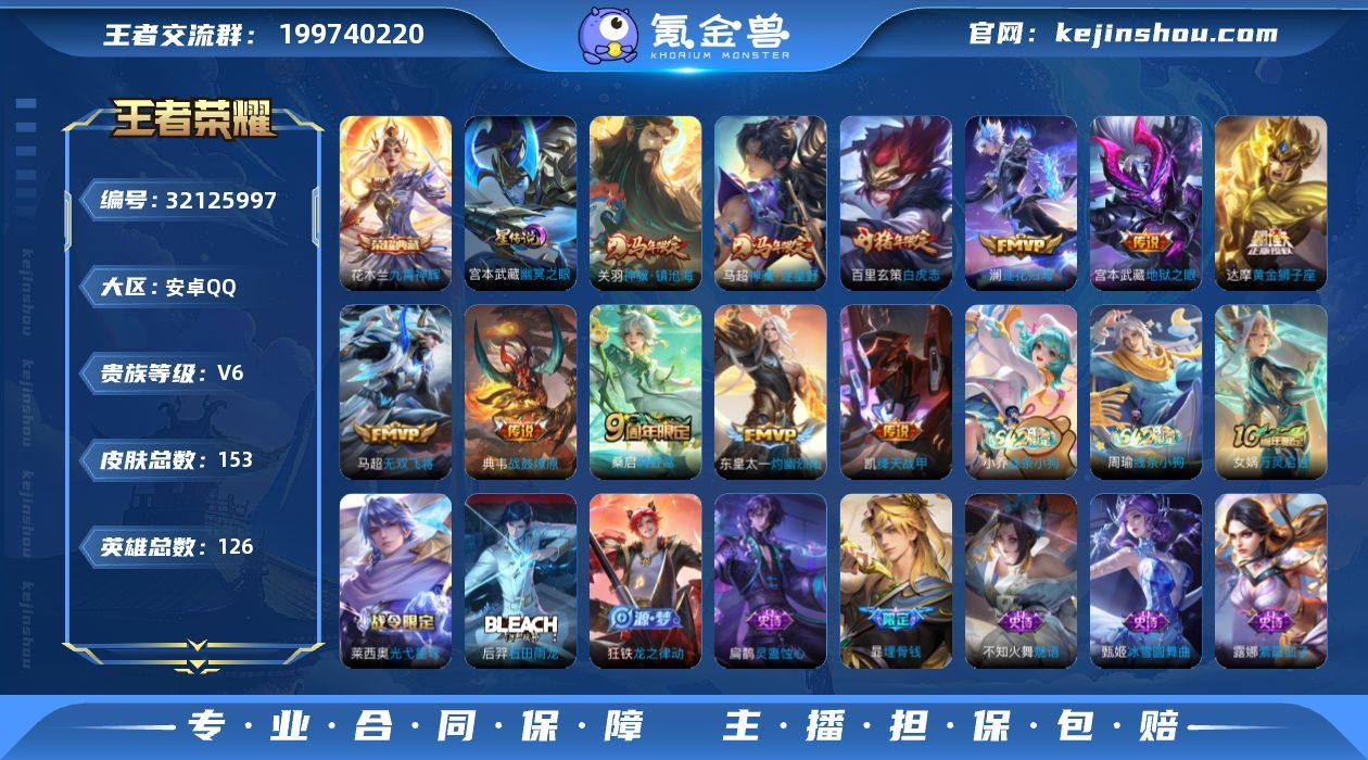 安卓Q-V6-至尊星耀V段位-127英雄-143皮肤-10传说-39史诗【英雄全皮】:阿古朵全皮,夏洛特全皮【传说皮肤】:后羿神树通天,公孙离云诺千山,杨玉环星之鸣奏,女娲愿照千秋盛,云缨幻光神枪,桑启鸣野蒿,兰陵王影龙天霄,夏洛特浮生妄,李信一念神魔,张良黄金白羊座【限定皮肤】:暃埋骨钱,蒙犽顽岩魄,大乔绒语心约,姜子牙天穹之誓,狄仁杰阴阳师,赵云皇家上将,元歌无心,狄仁杰魔术师,项羽海滩派对,兰陵王影龙天霄,李元芳云中旅人,裴擒虎李小龙,裴擒虎擒涛扼浪,云中君纤云弄巧,嫦娥拒霜思,鲁班大师探海日志,桑启海盐诗旅,夏洛特浮生妄,艾琳女武神,艾琳流音漫舞,司空震地狱燃心,阿古朵江河有灵,张良古海寻踪,蒙犽百解令,高渐离燃音魔法,妲己灵卜魔法,鬼谷子天穹祈灯,沈梦溪龙舞盛年,刘邦剑破天穹,周瑜熔金海岸【年限皮肤】:女娲愿照千秋盛【赛季限定】:李元芳云中旅人,桑启海盐诗旅,裴擒虎擒涛扼浪,鲁班大师探海日志,张良古海寻踪,鬼谷子天穹祈灯,刘邦剑破天穹,姜子牙天穹之誓,东皇太一噬灭天穹,太乙真人谧流熔炉,钟馗虚灵犬护,亚瑟荣光之誓【战令限定】:司空震地狱燃心,艾琳流音漫舞,高渐离燃音魔法,妲己灵卜魔法,周瑜线条小狗,小乔线条小狗【史诗皮肤】:露娜紫霞仙子,赵云皇家上将,甄姬冰雪圆舞曲,狄仁杰魔术师,廉颇地狱岩魂,宫本武藏鬼剑武藏,孙尚香水果甜心,嬴政摇滚巨星,妲己魅力维加斯,墨子金属风暴,吕布圣诞狂欢,李白千年之狐,张飞乱世虎臣,刘邦德古拉伯爵,阿轲节奏热浪,狄仁杰鹰眼统帅,娜可露露晚萤,不知火舞魅语,孙尚香时之恋人,裴擒虎李小龙,云中君纤云弄巧,嫦娥拒霜思,夏洛特永昼,艾琳奇遇舞章,阿古朵顽趣,元歌无心,司空震地狱燃心,阿古朵江河有灵,蒙犽百解令,妲己灵卜魔法,高渐离燃音魔法,蒙犽顽岩魄,暃埋骨钱,艾...
