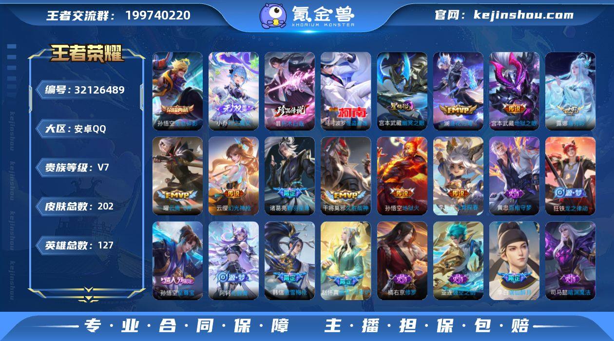 ·朽木白哉·怪盗基德·全息碎影·祈雪灵祝·凤求凰·愿照岁时盈·逐花归海·霜月吟·鹤羽星尊·飞鸢探春·云鹰飞将·谪仙醉月·傲雪梅枪·至尊宝·可二次】w18039-安卓Q-127英雄-202皮肤-9王者印记-250铭文-贵族积分3w【贵族7】【1典藏·1无双·2珍品·1星传说·14传说·19按键·257幸运值】【因赛季更新游戏段付以上号为准!】 【英雄全皮】:敖隐全皮,影全皮 【荣耀典藏】:孙悟空全息碎影 【无双皮肤】:小乔时之魔女 【珍品传说】:暃朽木白哉,马可波罗怪盗基德 【星元皮肤】:宫本武藏幽冥之眼 【传说皮肤】:后羿神树通天,虞姬愿照岁时盈,云缨幻光神枪,桑启鸣野蒿,澜逐花归海,露娜霜月吟,诸葛亮鹤羽星尊,李元芳飞鸢探春,公孙离祈雪灵祝,曜云鹰飞将,干将莫邪久胜战神,李白凤求凰,宫本武藏地狱之眼,孙悟空地狱火 【限定皮肤】:蒙犽顽岩魄,蔡文姬夏日便利店,大乔绒语心约,虞姬夏日便利店,姜子牙天穹之誓,李白谪仙醉月,狄仁杰阴阳师,赵云皇家上将,鲁班七号狮舞东方,元歌无心,甄姬游园惊梦,狄仁杰魔术师,项羽海滩派对,老夫子航海奇遇记,韩信傲雪梅枪,兰陵王驯魔猎人,孙悟空至尊宝,李元芳银河之约,李元芳匿光侦查者,诸葛亮鹤羽星尊,百里玄策原初追逐者,公孙离祈雪灵祝,云中君纤云弄巧,上官婉儿梁祝,嫦娥拒霜思,阿古朵江河有灵,张良古海寻踪,蒙犽百解令,高渐离燃音魔法,妲己灵卜魔法,鬼谷子天穹祈灯,小乔时之魔女,沈梦溪龙舞盛年,鲁班七号蔬乡物语,李元芳蔬乡物语,刘邦剑破天穹,程咬金群星魔术团,镜青焰无极,项羽苍威无极,周瑜熔金海岸 【年限皮肤】:李白凤求凰,公孙离祈雪灵祝,虞姬愿照岁时盈 【赛季限定】:张良古海寻踪,鬼谷子天穹祈灯,刘邦剑破天穹,姜子牙天穹之誓,东皇太一噬灭天穹,太乙真人谧流熔炉,钟馗虚灵犬护,甄姬逆浪荇歌,亚瑟荣光之誓,百里玄策原初追逐...