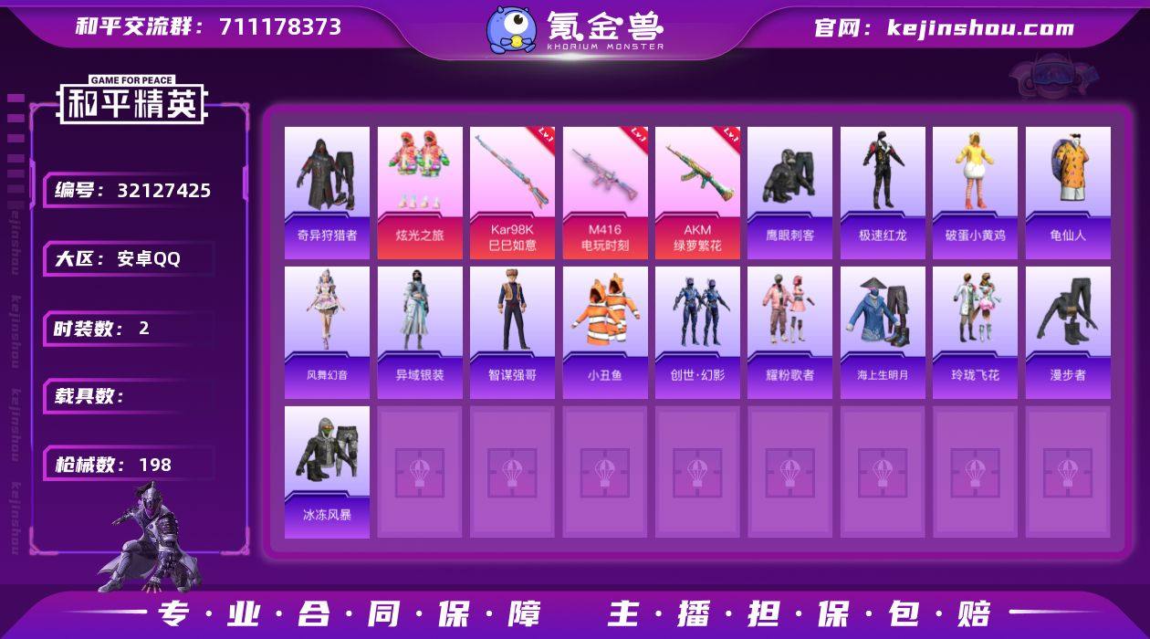 DSH2329【地铁满天赋2粉装-6特效枪 小丑鱼,奇异狩猎者】安卓手Q-2粉装-6特效枪-161套装-198枪皮-16王牌印记-荣耀皇冠Ⅲ-54481热力值【2粉装】炫光之旅,角色-羊梦糖心【6特效枪】ACE32-萌骑漫游[5级],DP-28-豹影疾电[5级],Kar98K-巳巳如意[5级],AKM-绿萝繁花[5级],Mk14-福马献瑞[5级],M416-电玩时刻[5级]【3稀有】小丑鱼,奇异狩猎者,AWM-黄金龙骨【6飞行器】顶峰精英尾迹,异域银装飞行器,狂鲨锋刃飞行器,破刃行动尾迹,鸡智如我飞行器,炫彩糖果飞行器【1头盔】金羽特工头盔【1背包】金羽特工背包【348其它衣服和枪皮】牛气满满,极速红龙,破蛋小黄鸡,玉兔迎春,异域银装,燃烧卡路里,SS17特训,血色贵族,涂山之恋,雨过天青,SS19特训,角色-都市丽猫,朱霞炽焰,白色伏地魔,飞行日记,智谋强哥,恋语绒绒,曼妙人鱼,旭日情侣,快乐星愿,柠萌假日,幻影武者,街头风暴,凌霄紫焰,福马献瑞,红色运动,青年教官,风舞幻音,黄色伏地魔,炫彩糖果,滨海假日,绮丽涂鸦,锦衣飞扬,SS28特训,SS31特训,创世·幻影,SS35特训,甜蜜熊情侣,漫步者,SS25特训,元气之梦,龙的传人,冰河战士,雨林探路者,夏日音浪,黑色伏地魔,炫蓝之夏,黄色名流,SS21特训,纯真浪花,完美偶像,惊鸿侠骨,角色-幸运青,SS29特训,蓝色运动,热情海星,粉黛兰香,空岛之星,马上来财,薄荷星砂,沙漠兵团,幻世战舞者,都市魅力,SS30特训,角色-瑰石海星,战地督导,竞技名士,SS18特训,快闪甜心,荣耀,春光漫游,雪国风尚,缤纷果语,探宝勇士,燕燕于飞,深蓝色名流,猛禽,大橘大利,海上生明月,狂鲨锋刃,森林游猎者,幻世保卫者,午间小调,游乐,红釉青花,角色-罗莉,SS37特训,虎虎生威吉莉,SS24特训,萌趣颜团子,SS16特训,战术大师,冷焰舞者,特种颜团子,漫游都市,玲珑飞花,擎苍青焰,长空猛禽,特训学院,老实芭蕉,湖蓝色名流,SS15特训,SS20特训,潮流炫酷,酷潮明星,狙击之神,都市漫游者,SS27特训,青