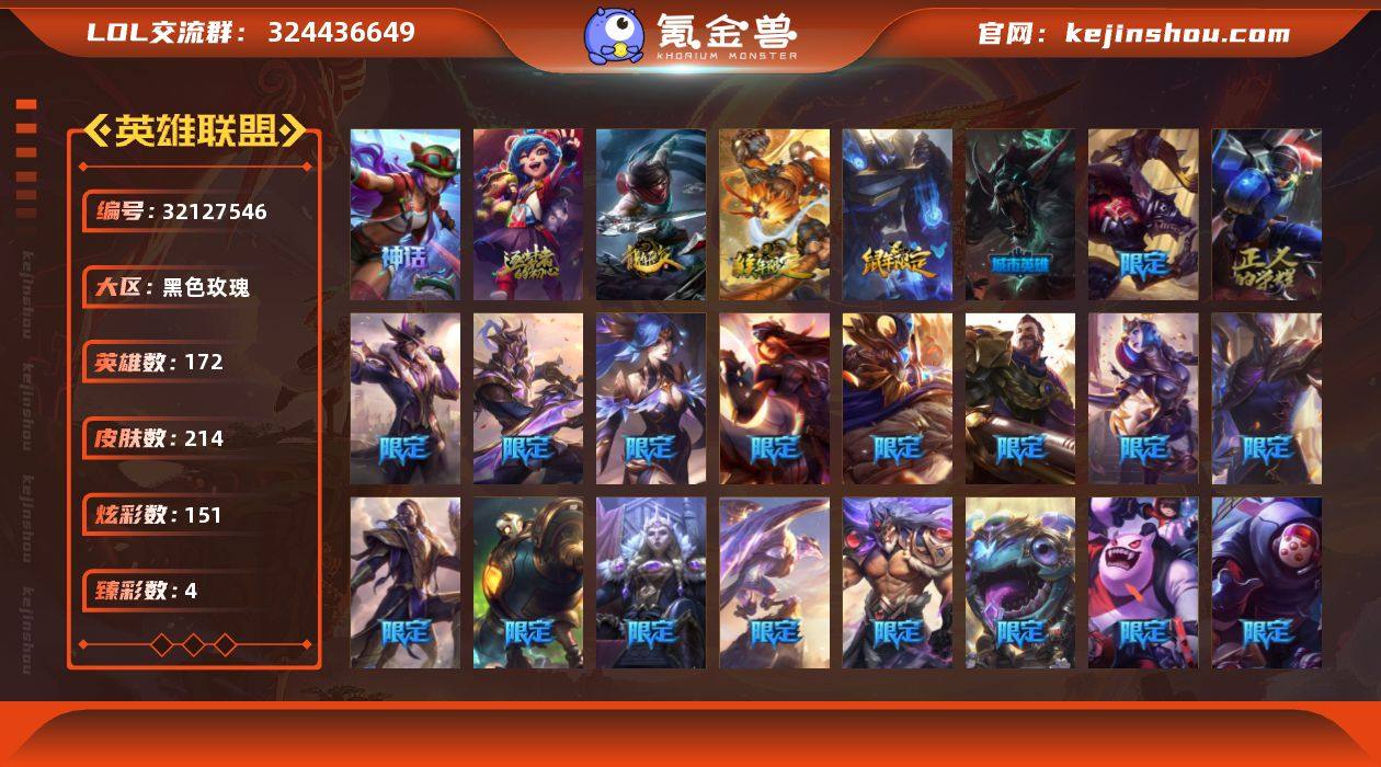 【特价出售/店主推荐】铂金段位-172英雄-214皮肤-151炫彩-0终极-2神话-30限定-15传说-55史诗 【臻彩皮肤】:无畏骑士瑟庄妮赤子初心,星之守护者娑娜未来之光,星之守护者阿卡丽热情之光,水晶玫瑰迦娜甜蜜花蕾 【年限皮肤】:银龙裁决泰隆,美猴王孙悟空,王国机神玄武盖伦 【冰雪限定】:持胡萝卜的雪人易,夺命美人卡特琳娜,喜庆之树茂凯,寒冬精灵璐璐,冰雪节辛吉德 【神话皮肤】:十周年纪念安妮,十五周年纪念希维尔 【限定皮肤】:暗杀星努努和威朗普,SKTT1贾克斯,SKTT1薇恩,暗裔英雄盖伦,胜利女神希维尔,胜利之树茂凯,胜利枪神格雷福斯,胜利女神奥莉安娜,胜利之剑亚托克斯,胜利枪神卢锡安,胜利机器人布里茨,胜利女神瑟庄妮,胜利凤凰艾尼维亚,胜利之王泰达米尔,胜利巨口克格莫,胜利女神娑娜,胜利剑圣易,胜利之运崔斯特,暗影沃里克,都铎王朝图奇,防暴天使凯尔,海之歌永恩 【传说皮肤】:战地机甲厄加特,霸天零式赛恩,提莫约德尔人的一大步,约德尔国队长提莫,战斗学院凯特琳,丧尸布兰德,神拳李青,第三类接触黑默丁格,腥红之月鬼武姬阿卡丽,钢铁军团盖伦,黎明使者锐雯,黯黑魔龙希瓦娜,焰尾妖狐阿狸,星之守护者金克丝,暗星锤石 【史诗皮肤】:冰霜烈焰安妮,重生之沙费德提克,圣光审判凯尔,地狱火阿利斯塔,源代码索拉卡,黑帮狂花厄运小姐,女船长厄运小姐,刀锋女王莫甘娜,炼金狂士辛吉德,熔火之心拉莫斯,夜行义贼艾瑞莉娅,海克斯科技迦娜,寒冰女皇迦娜,星之守护者迦娜,恐惧新星普朗克,血石诅咒塔里克,古墓丽影凯特琳,铁血狙击手凯特琳,海贼魅影卡特琳娜,前线指挥官卡特琳娜,死亡绽放伊莉丝,腥红之月伊莉丝,三昧真火孙悟空,防弹武僧李青,地下拳王李青,生化博士黑默丁格,法老王朝内瑟斯,艳后奈德丽,血色之锤波比,飞车暴走族古拉加斯,刺客信条...