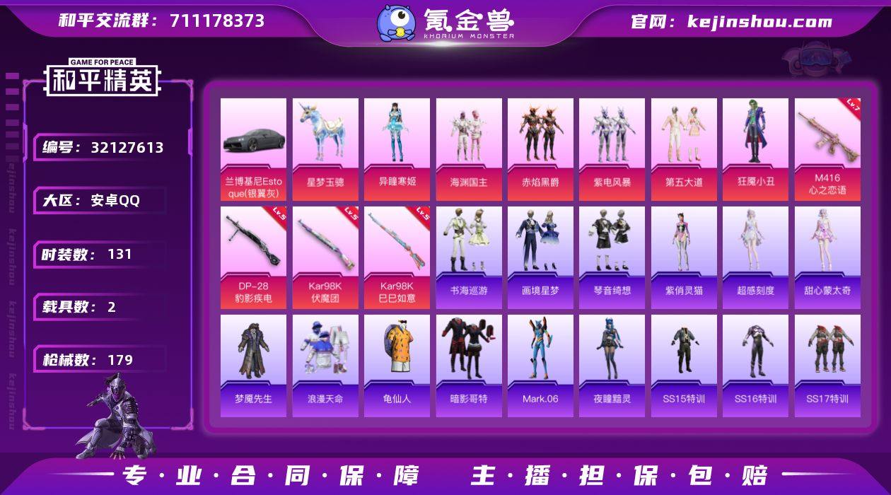 安卓 【小号 浪漫天命 暗影哥特 蓝螳螂 M416-心之恋语(七级) 兰博基尼Estoque(银翼灰)】手Q-6粉装-4特效枪-2载具-1粉色飞行器-58775热力值-9王牌印记-131套装-179枪皮 【热门品类】:套装-浪漫天命,套装-龟仙人,套装-暗影哥特,角色-Mark.06 【粉色套装】:粉装-海渊国主,粉装-赤焰黑爵,粉装-紫电风暴,粉装-第五大道,角色-狂魇小丑,角色-异瞳寒姬 【粉色枪皮等级】:M416-心之恋语(七级),Kar98K-伏魔团(五级),Kar98K-巳巳如意(五级),DP-28-豹影疾电(五级) 【粉色载具】:兰博基尼Estoque(银翼灰),星梦玉骢 【粉色枪皮】:M416-心之恋语,Kar98K-伏魔团,Kar98K-巳巳如意,DP-28-豹影疾电 【粉色降落伞】:绝对恒星降落伞,快乐主宰降落伞,四圣焕新降落伞,香水柠檬降落伞,星之彼岸降落伞,暗夜玫瑰降落伞,齐天大圣降落伞,彩虹甜喵降落伞,旋转彩虹降落伞,暗夜鎏金降落伞,第五大道降落伞,飒粉甜心降落伞,天象三御降落伞,炫彩糖果降落伞 【稀有套装】:套装-龟仙人,角色-超感刻度,角色-甜心蒙太奇,套装-雪国风尚,套装-炫彩糖果,角色-夜瞳黯灵,角色-紫俏灵猫,套装-书海巡游,套装-画境星梦,套装-琴音绮想,角色-月烬之祷 【稀有枪皮】:AUG-冰晶雪宝,AKM-冰凉西瓜,AKM-彩虹符号,AKM-星之彼岸,AKM-灼热熔岩,AKM-破晓战魂,AKM-萌趣颜团子,AKM-虎虎生威,AKM-霓虹街区,AKM-龙的传人,M16A4-凝视深渊,M16A4-幻世战舞者,M16A4-甜心亚梦,M16A4-红色方程式,M16A4-蓝色火焰,SCAR-L-炫彩节奏,SCAR-L-玉兔迎春,SCAR-L-红色方程式,SCAR-L-龙宫之主,M416-糯团青竹,M416-红色方程式,M416-绯红前夜,M416-蓝色火焰,M416-诡夜天鹅,GROZA-异彩先驱,GROZA-彩虹符号,GROZA-懵萌河马,GROZA-田园牧歌,AUG-2P战斗服款,AUG-天降萌叽,AUG-耀粉歌者,AUG-绝对恒星,QBZ-彩虹符号...