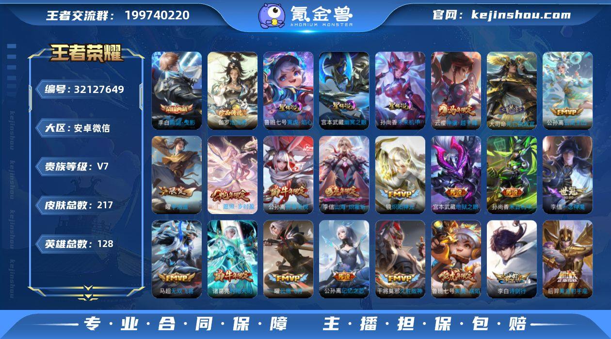 贵族等级:V7 典藏皮肤数:1 珍品无双皮肤数:0 无双皮肤数:0 珍品传说皮肤数:1 传说皮肤数:22 史诗皮肤数:57 皮肤数:217 英雄数:128 段位:荣耀王者