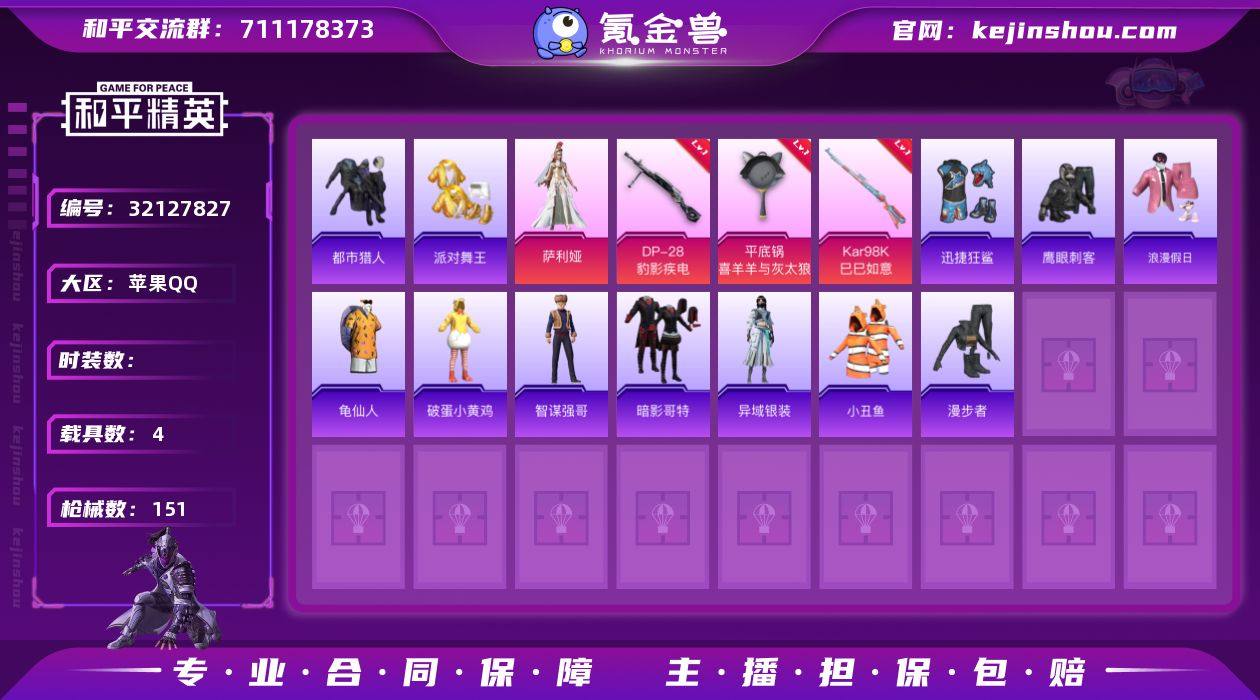 XS11405【身法号4载具-3粉装-6特效枪小丑鱼,都市猎人,派对舞王,暗影哥特】苹果手Q-4载具-3粉装-6特效枪-142套装-151枪皮-7王牌印记-传奇王牌13星-49551热力值【4载具】法拉利LaFerrari(赛车红),保时捷911 敞篷版(极速黄),法拉利Purosangue(赛车红),法拉利Roma(赛车红)【3粉装】角色-异瞳寒姬,角色-萨利娅,角色-绝对恒星【6特效枪】ACE32-萌骑漫游[5级],Kar98K-巳巳如意[5级],M249-绝对恒星[5级],Mk14-福马献瑞[5级],DP-28-豹影疾电[5级],平底锅-喜羊羊与灰太狼[7级]【4稀有】小丑鱼,都市猎人,派对舞王,暗影哥特【13飞行器】登顶巅峰飞行器,粉色滑翔尾迹,顶峰精英尾迹,马上有福飞行器,告白纸鹤飞行器,破刃行动尾迹,异域银装飞行器,炫彩糖果飞行器,云朵驼驼飞行器,空岛之星尾迹,狂鲨锋刃飞行器,鸡智如我飞行器,绝对恒星飞行器【1背包】深海小丑鱼背包【280其它衣服和枪皮】青年教官,雨过天青,战术大师,阳光菠萝,红色运动,超能元气,空岛之星,SS36特训,朱霞炽焰,冰冻风暴,猛禽,绯格组合,秘语星愿,橘黑制服,SS27特训,薄荷星砂,SS30特训,SS33特训,热情海星,巳巳如意,浪漫假日,街头风暴,幻世战舞者,粉黛兰香,特训学院,琴音绮想,鹰眼刺客,元素星魂,长空猛禽,SS28特训,耀粉歌者,顶瓜瓜,异域银装,香桃花海,SS37特训,滨海厨神,曼妙人鱼,角色-8号机,马上有钱,雾都回忆,画境星梦,元气之梦,萌鸡速递,幻影武者,蓝色运动,迅捷狂鲨,极速红龙,恋语绒绒,黄色名流,大橘大利,旭日情侣,海盐绵绵冰,凌霄紫焰,燕燕于飞,深蓝色名流,玩偶服-小熊虫,魅力单车,炫彩糖果,SS26特训,蓝彩潮人,书海巡游,酷潮明星,鱼渊荷华,霓虹街区,游乐,SS34特训,雪国风尚,角色-甜心蒙太奇,都市魅力,白糯汤圆,龟仙人,铁血战翼,森林游猎者,龙的传人,擎苍青焰,狂鲨锋刃,蝶变,潮流炫酷,漫游都市,角色-英勇保护者,破晓战魂,玉兔迎春,白色伏地魔,漫步者,柠萌假日,缤