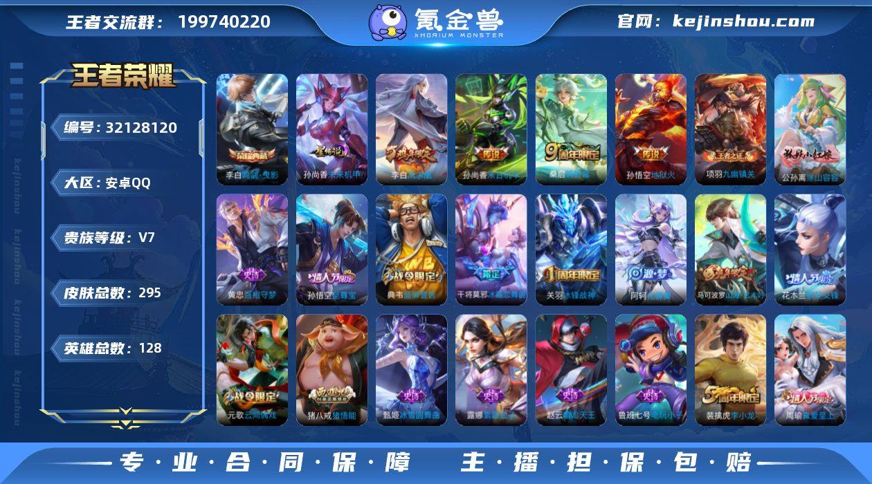 ky新手入门号!李白典藏!可认证安卓(q)区295皮2典藏 4传说1星97限定36王者印记