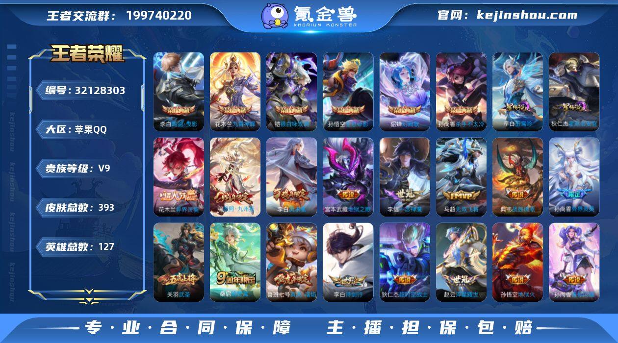 ky苹果(q)区393皮6典藏20传说2星138限定16王者印记.亮点:花木兰-异界灵契 愿照·九州拓 鸣野蒿 战鼓燎原 电玩-雷克斯 诗剑行 无双飞将 寅虎-瑞焰 异界灵契-孙尚香 淬星耀世 飞鸢探春 绛天战甲 武圣 一念神魔 【道具:3天幕 14按键 110亲密玫瑰 29浓情玫瑰】