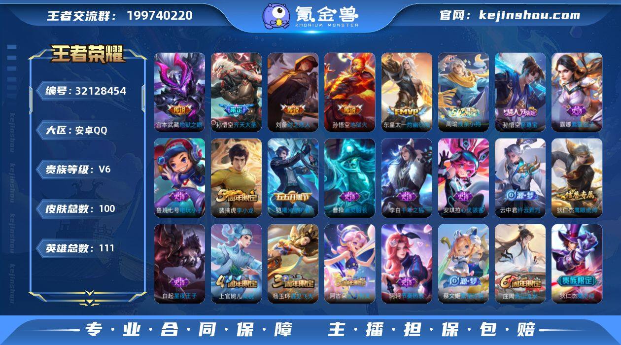 MWZ105441【传说5 至尊宝 V6】安卓Q-100皮肤-111英雄 【传说皮肤】 灼幽烈阳 齐天大圣 地狱之眼 时之恋人 地狱火 【史诗皮肤】 电玩小子 至尊宝 线条小狗 江河有灵 幻夜行动 幽灵船长 繁星吟游 魅力维加斯 魔术师 鹰眼统帅 曙光守护者 千年之狐 逐浪之夏 紫霞仙子 梁祝 李小龙 月团寄思 遇见飞天 摇滚巨星 纤云弄巧 皇家上将 高山流水 节奏热浪 心灵骇客 星夜王子 【勇者皮肤】 时空谍影 探海日志 海盐诗旅 天穹祈灯 古海寻踪 妄想特派 云械蓝图 熔金海岸 仙境爱丽丝 霸王丸 龙腾万里 原初探秘者 街头霸王 阿尔法小队 御狮 功夫老勺 醍醐杖 敏锐之力 万事如意 黑桃队长 御霄 疑决卦 进击墨子号 鲨炮海盗猫 千军破阵 幻想奇妙夜 朔风刀 海滩派对 丁香结 死亡骑士 混沌棋 忍·炎影 花好人间 海滩丽影 西部大镖客 爱心护理 玩偶对对碰 白色死神 烛龙 演武夺筹 拳王 沙漠行僧 少女阿狸 阴阳师 万华元夜 穷奇 圆桌骑士 【稀有英雄】 不知火舞 橘右京 夏洛特 娜可露露 韩信 艾琳 赵云 营地ID:460834357 "