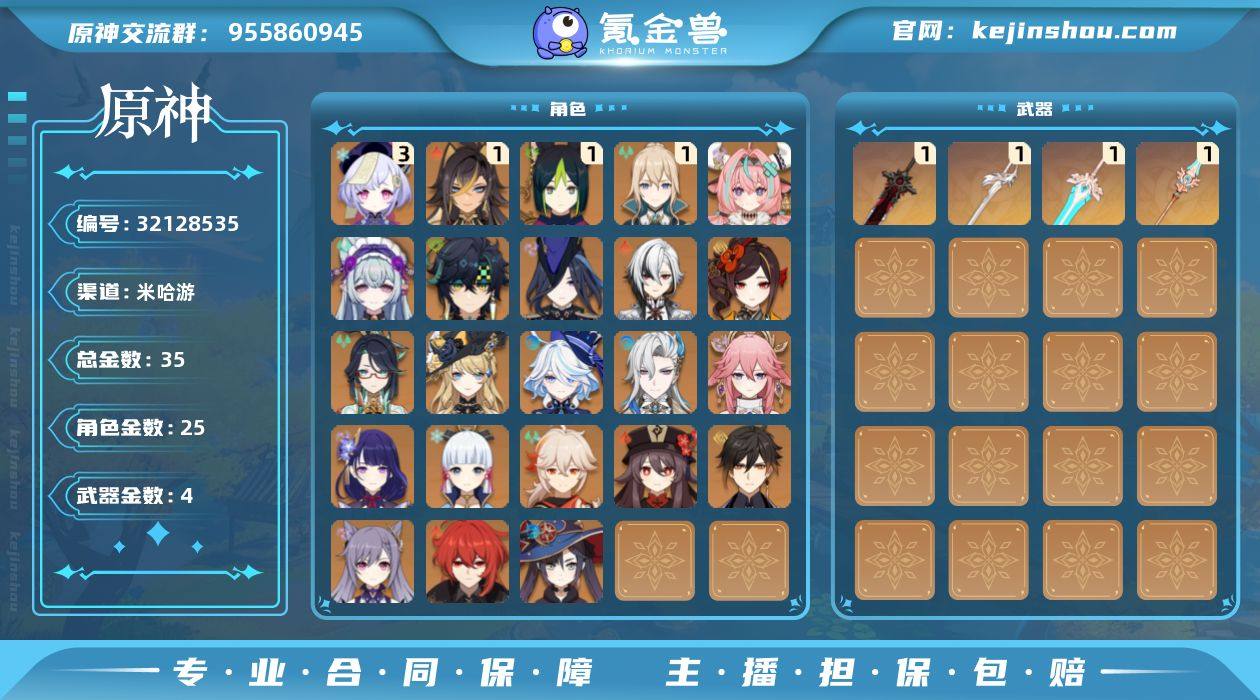 【YSX1714】60级/35黄/女主/25个五星角色/4个五星武器/那维莱特/芙宁娜/0命兹白/瓦雷莎/千织/娜维娅/钟离/梦见月瑞希/闲云/枫原万叶/神里绫华/克洛琳德/八重神子/雷电将军/刻晴/基尼奇/一命提纳里/阿蕾奇诺/一命迪希雅/胡桃/迪卢克/一命琴/三命七七/莫娜/0命哥伦比娅/天空之脊/狼的末路/天空之傲/风鹰剑