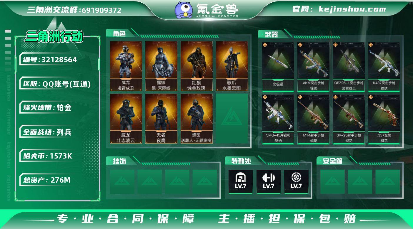 【SJ8497】总资产(M):276M/哈夫币(K):1573K/哈夫币(K):1573K/传说枪皮数:31/全面战场等级:29_段位:列兵/烽火地带等级:60_段位:铂金/红狼-蚀金玫瑰/骇爪-水墨云图/露娜-黑·天际线/威龙-凌霄戍卫/威龙-壮志凌云(S3)/蜂医-送葬人·无题密令(S5)/无名-夜鹰(S4)/近战-北极星/近战-黑鹰/M4A1突击步枪-蚀金玫瑰/M4A1突击步枪-阿米娅/AKM突击步枪-锦绣/QBZ95-1突击步枪-凌霄戍卫/M16A4突击步枪-狩猎时刻/AUG突击步枪-悠然茶歇/M7战斗步枪-神秘艺术/AK-12突击步枪-夜鹰/SCAR-H战斗步枪-铁艺苍穹/SCAR-H战斗步枪-水墨云图/G3战斗步枪-狩猎时刻/CAR-15突击步枪-阿米娅/腾龙突击步枪-捞点薯条/K437突击步枪-北极星/K437突击步枪-锦绣/MK47突击步枪-悠然茶歇/Vector冲锋枪-狩猎时刻/UZI冲锋枪-悠然茶歇/SMG45冲锋枪-骑士/SMG-45冲锋枪-锦绣/SR-3M紧凑突击步枪-荼蘼/勇士冲锋枪-能天使-午夜邮差/QCQ171冲锋枪-北极星/725双管霰弹枪-送葬人-无题密令/M14射手步枪-蛮荒/M14射手步枪-缄花/SR-25射手步枪-缄花/AWM狙击步枪-捞点薯条/.357左轮-缄花/93R-捞点薯条/复合弓-黑-天际线/M1014霰弹枪-潜袭者(典藏)/M4A1突击步枪-特勤执行/AKM突击步枪-林中猎手/QBZ95-1突击步枪-曙光/QBZ95-1突击步枪-ACE/Ash-12战斗步枪-守夜人/K416突击步枪-冬日风情/K416突击步枪-腊梅/M16A4突击步枪-竞赛选手/AUG突击步枪-战术迷彩/AUG突击步枪-蝮蛇/AUG突击步枪-特勤执行/SG552突击步枪-尖端治疗/SG552突击步枪-深海恐惧/SCAR-H战斗步枪-囚徒/G3战斗步枪-战场英杰/PTR-32突击步枪-ACE/AS Val突击步枪-刀锋/AS Val突击步枪-尖端治疗/AS Val突击步枪-典狱官/腾龙突击步枪-无垢/MP5冲锋枪-深海恐惧/MP5冲锋枪-竞技风/P90冲锋枪-紧急戒备/Vector冲锋枪-阿萨拉文明/Vector冲锋枪-红色彗星/SR-3M紧凑突击步枪-荒野求生/勇士冲锋枪-深海恐惧/MP7冲锋枪-...