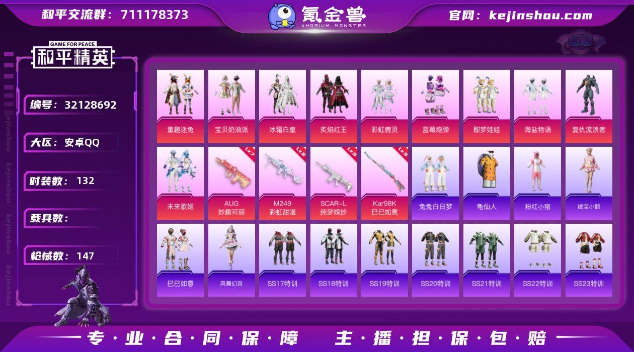 YZJ15168 可二次 安卓Q-【小女号 满级AUG妙趣可丽 童趣 鹿灵 奶油派 歌姬 兔兔白日梦 白兰地 摇滚狂鲨 夏日倾情 绒宝小鹅 红釉青花】10粉装9特效枪5热门132套装147枪皮 49139热力值 10印记 历史超级王牌8星 【10粉装】 宝贝奶油派 未来歌姬 酣梦娃娃 童趣迷兔 冰霜白皇 炙焰红王 海盐物语 彩虹鹿灵 复仇流浪者 蓝莓炮弹 【9特效枪】 SCAR-L-纯梦嫁纱 (5级) AKS-74U-森灵之息 (3级) Kar98K-巳巳如意 (5级) AUG-妙趣可丽 (7级) M249-彩虹甜喵 (6级) AKS-74U-森灵之息 (3级) AA12-G-萌骑幻想 (4级) ACE32-萌骑漫游 (3级) 破片手榴弹-招财进宝 (6级) 【5热门】 龟仙人 兔兔白日梦 粉红小猪 破蛋小黄鸡 Kar98K-深海曼妙 【1头盔】 童趣迷兔头盔 【1背包】 深海曼妙背包 营地ID:793431385